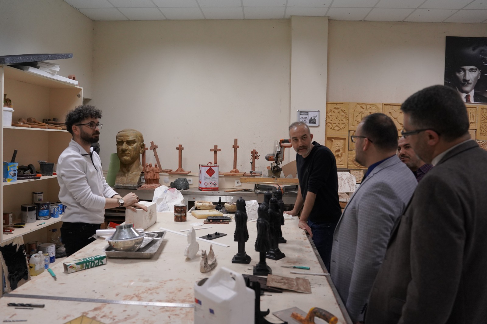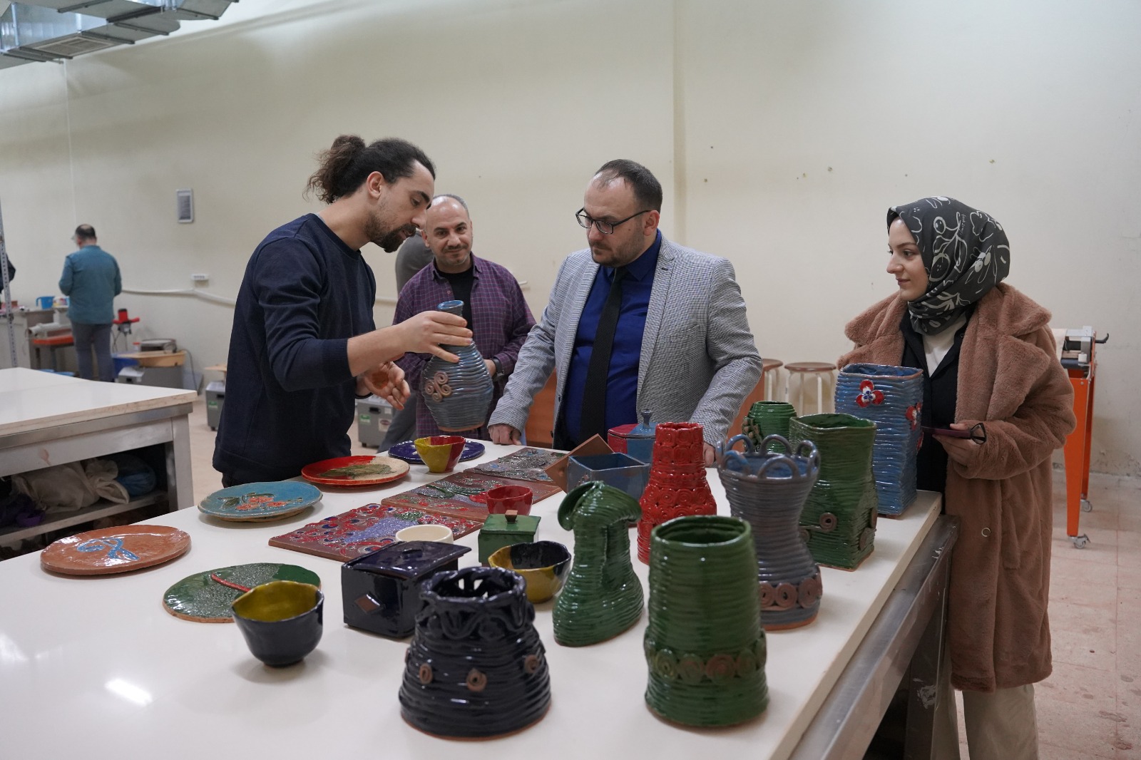 After the fun sports activity, the students visited the Art-Empathy Art Exhibition and Handicraft Workshops at the Vocational School of Technical Sciences. During this visit, the theatre team examined the artworks of our students under the guidance of Art-Empathy Exhibition coordinator Dr. Abdulkadir Öznülüer, Lecturer Mikail Sevindik, Lecturer Emre Koç and Lecturer Serdar Dik.