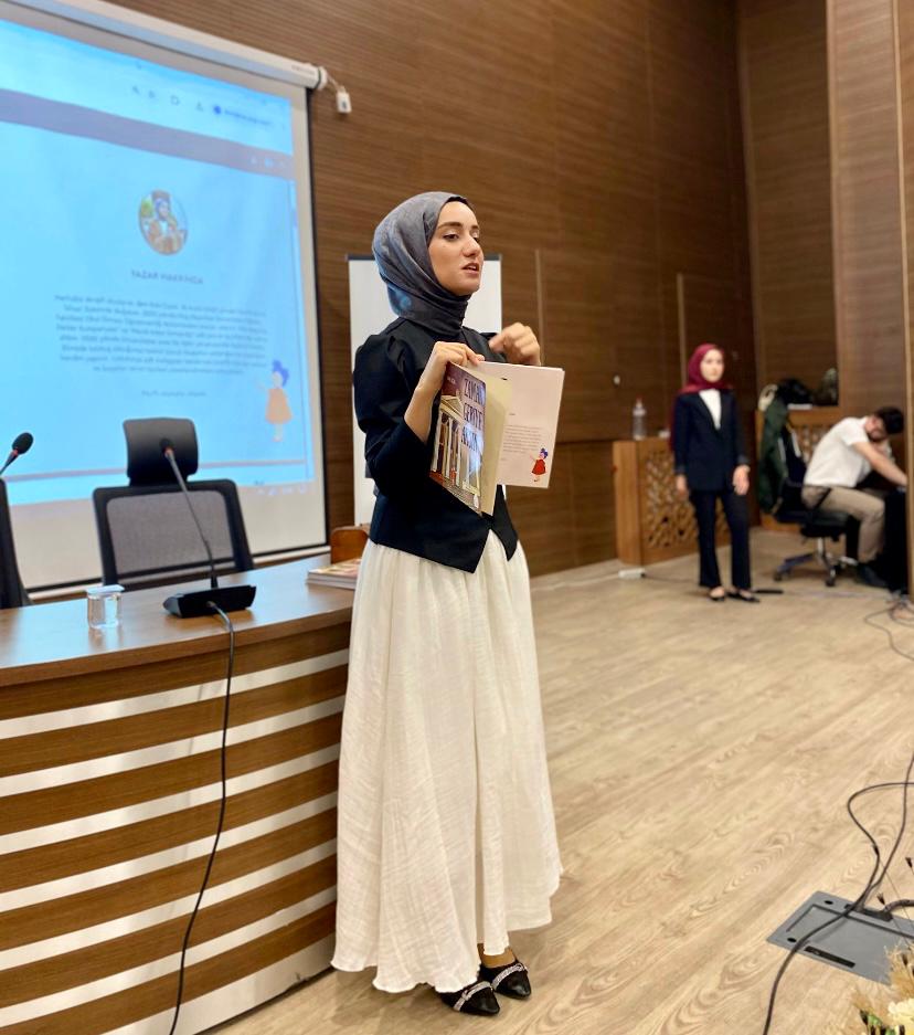 Etkinlik kapsamında, Üniversitemiz Okul Öncesi Öğretmenliği mezunlarından Eda Çiçek davetli konuşmacı olarak katıldı. Çiçek, çocuklar için yazdığı "Zaman Geriye Aksın" isimli öykü kitabını çocuklara etkileşimli bir şekilde okudu ve onlarla kitap üzerine sohbet etti.