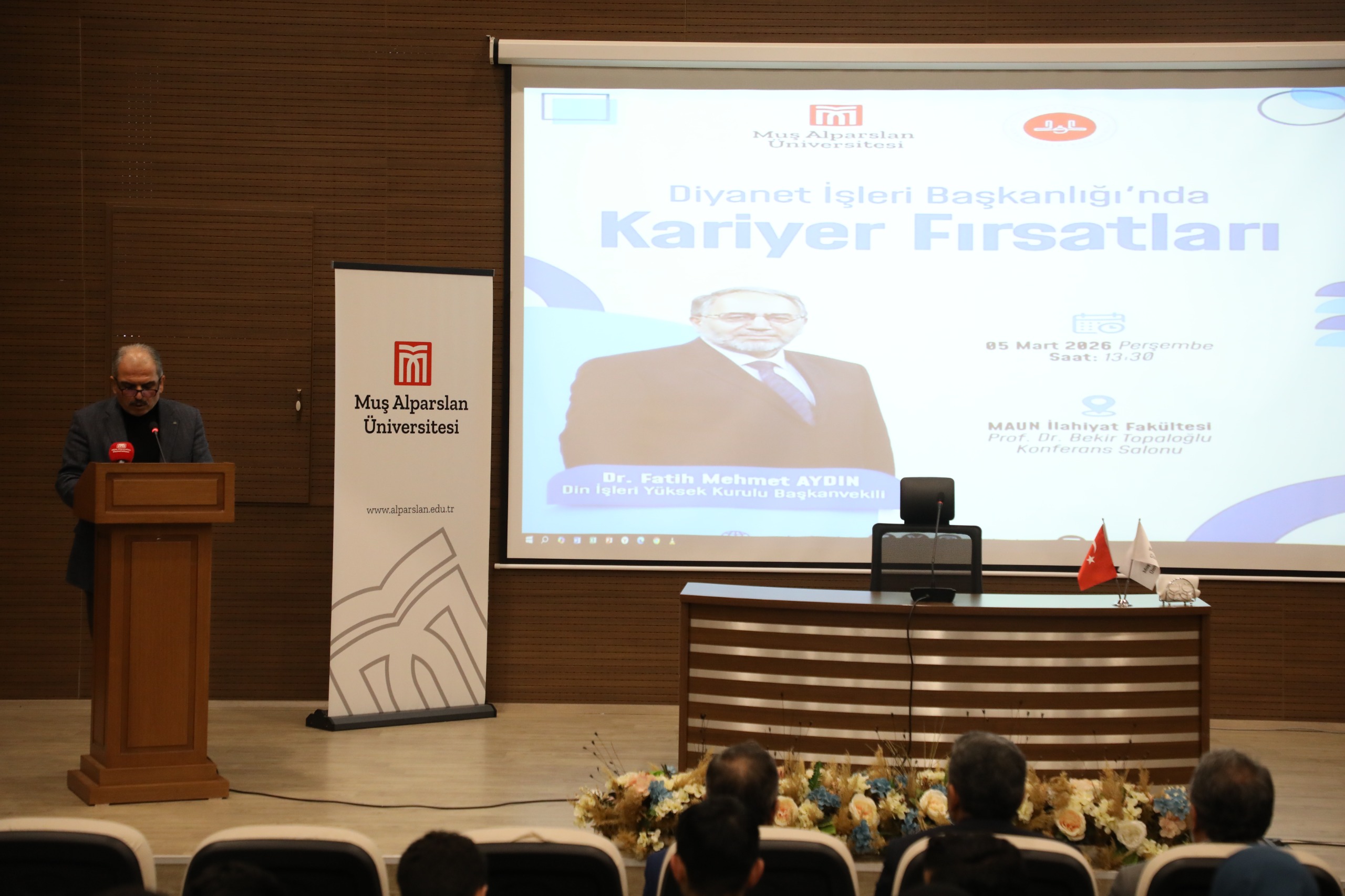 Yoğun katılımın olduğu programda Dr. Mehmet Fatih Aydın, Diyanet İşleri Başkanlığı’nın yapısı, kurum içerisinde sunulan kariyer olanakları ve ilahiyat mezunlarının çalışma alanları hakkında önemli bilgiler paylaştı. Öğrencilerle deneyimlerini de paylaşan Aydın, mesleki gelişim ve kamu kurumlarında kariyer planlaması konusunda tavsiyelerde bulundu.