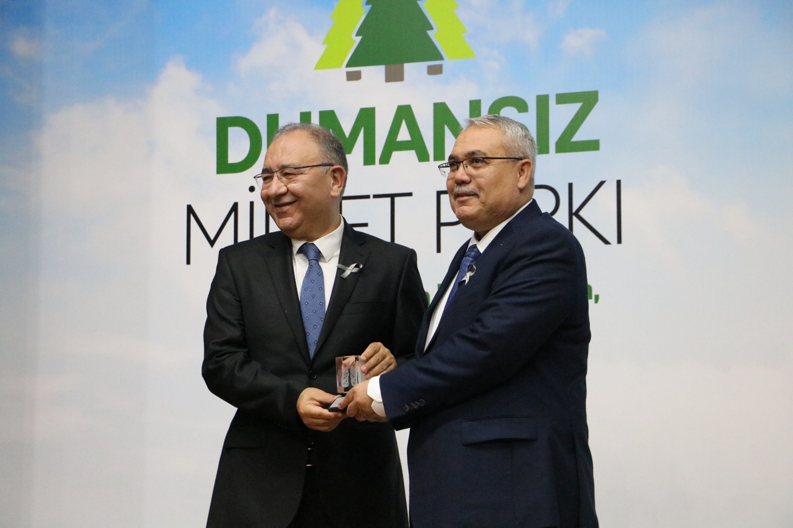 Cumhurbaşkanımız Sayın Recep Tayyip Erdoğan’ın riyasetinde 2018-2023 Tütün Kontrol Strateji Belgesi ve Eylem Planı hazırlandı ve bu plan çerçevesinde ülkemizde kapsamlı adımlar atıldı. Örneğin kamuya açık kapalı alanlarda tütün kullanımı yasaklandı. Bugün biz de burada sembolik bir adım atacağız ve Kongre Kültür Merkezimizin önündeki alanı dumansız hava sahası ilan edeceğiz. İnşallah bu alanları Külliyemiz içerisinde gittikçe genişleterek gençlerimizin bu kötü alışkanlıktan kurtulmalarına vesile olacağız. Bu takdire şayan çalışmaya huzurları ile destek veren Sayın Valimize ve Belediye Başkanımıza, Genç Birikim Derneğine ve özellikle bugünkü etkinliği anlamlı kılan Prof. Dr. Toker Ergüder, Prof. Dr. Nazmi Bilir, Doç. Dr. Yakup Arslan ve Doç. Dr. Mevlüt Karataş hocalarımıza çok teşekkür ediyorum” dedi.