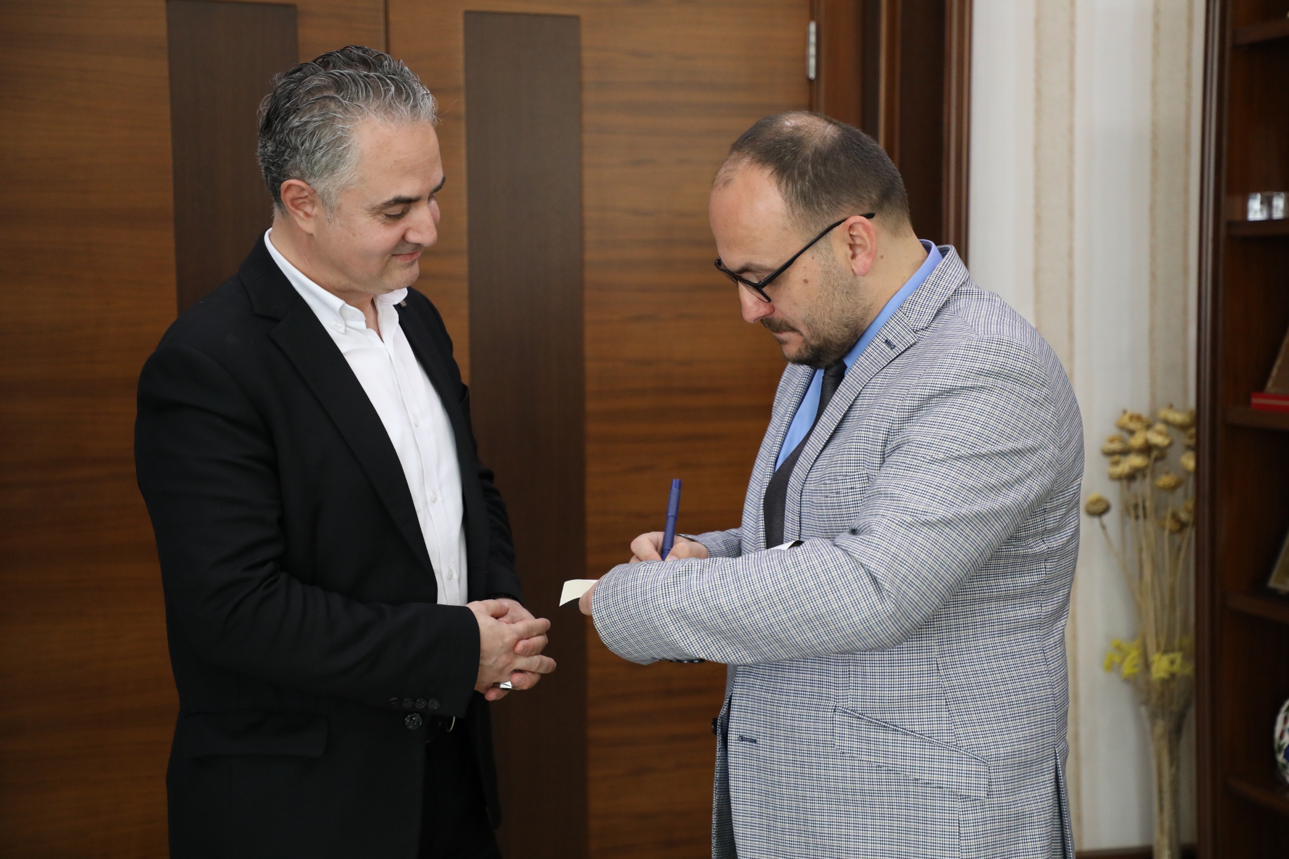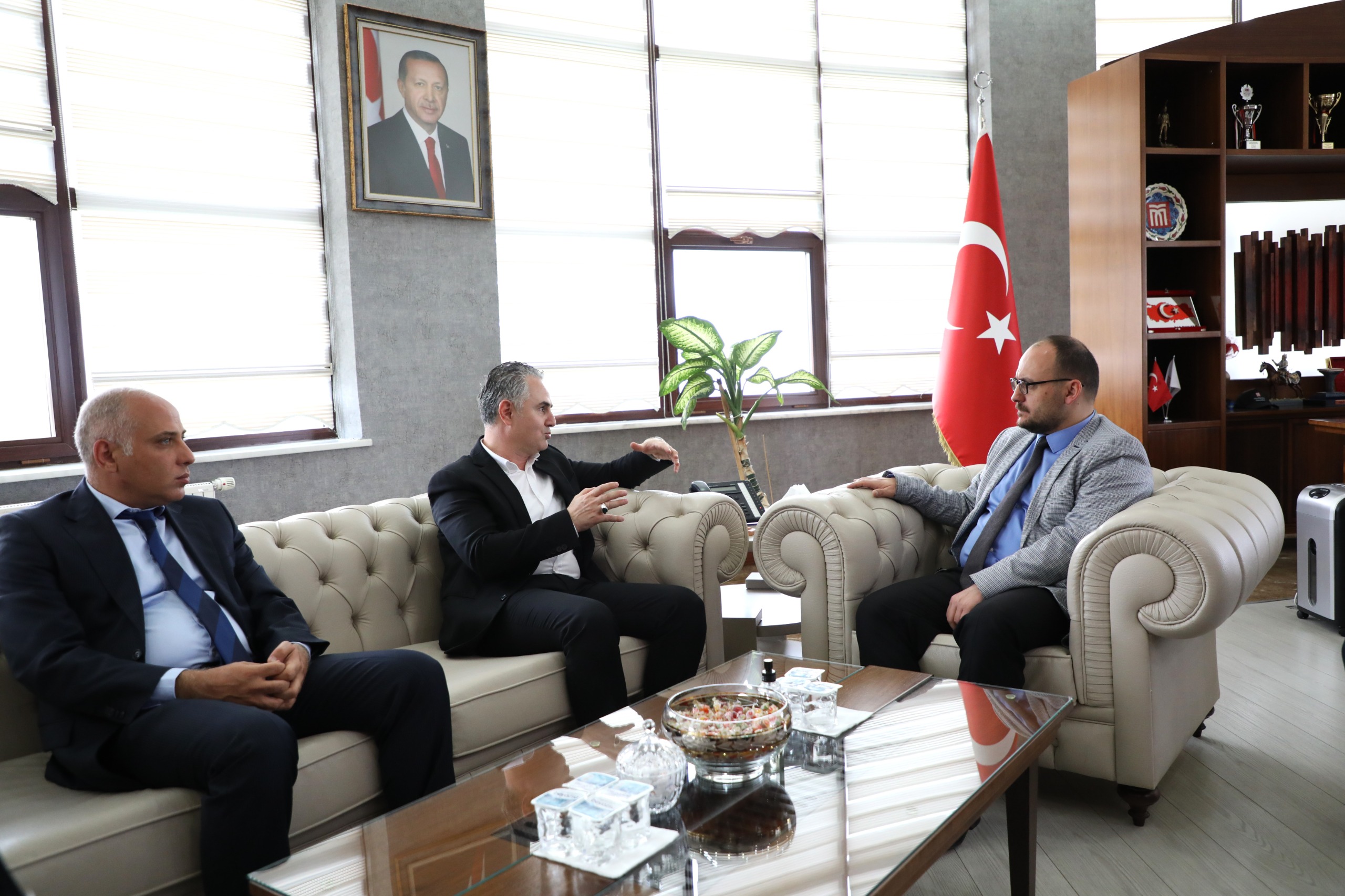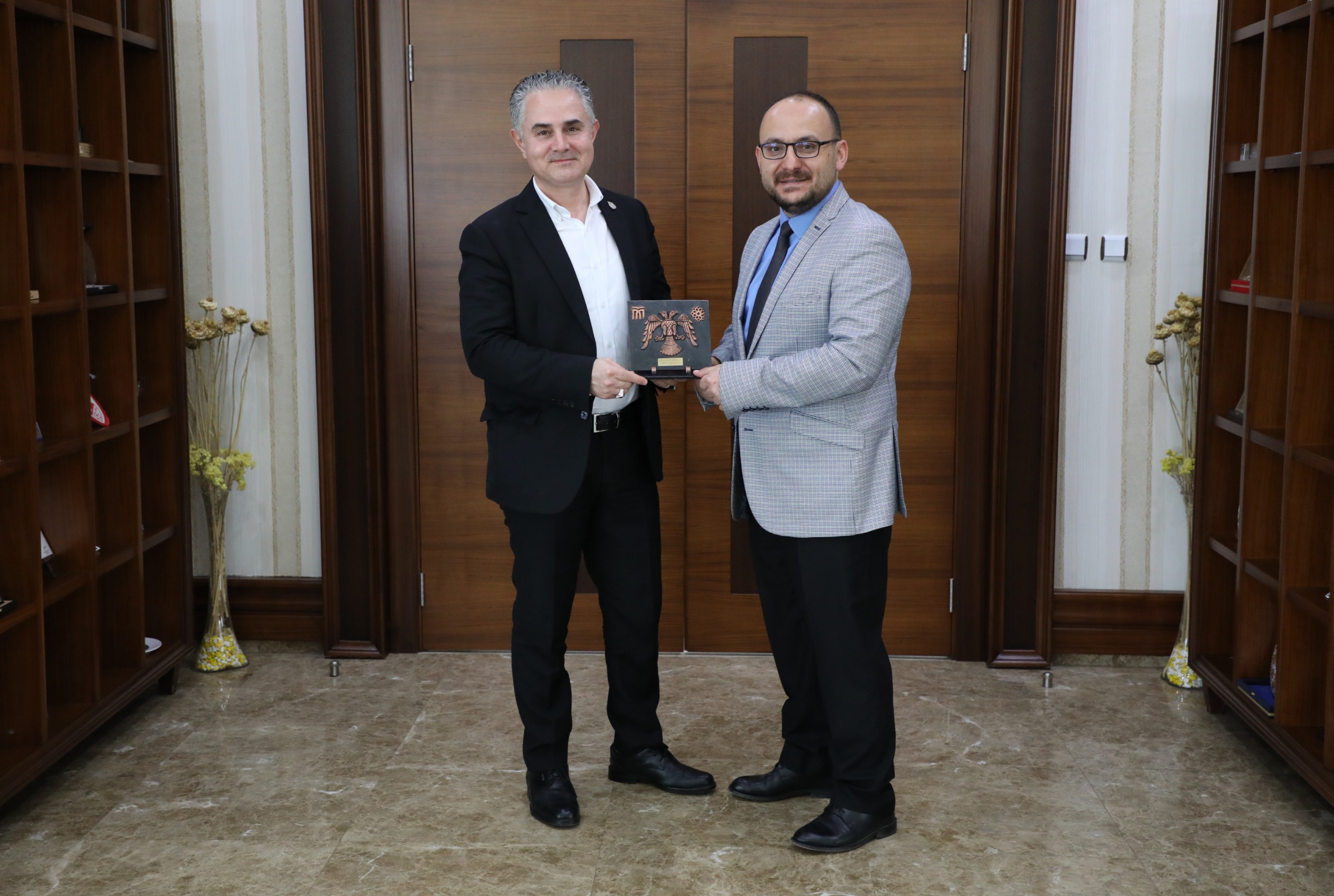 Monster Bilgisayar CEO’su İlhan Yılmaz ve Mühendislik-Mimarlık Fakültesi Dekanı Prof. Dr. Muhammed Çınar, Rektörümüz Prof. Dr. Mustafa Alican’ı makamında ziyaret etti.