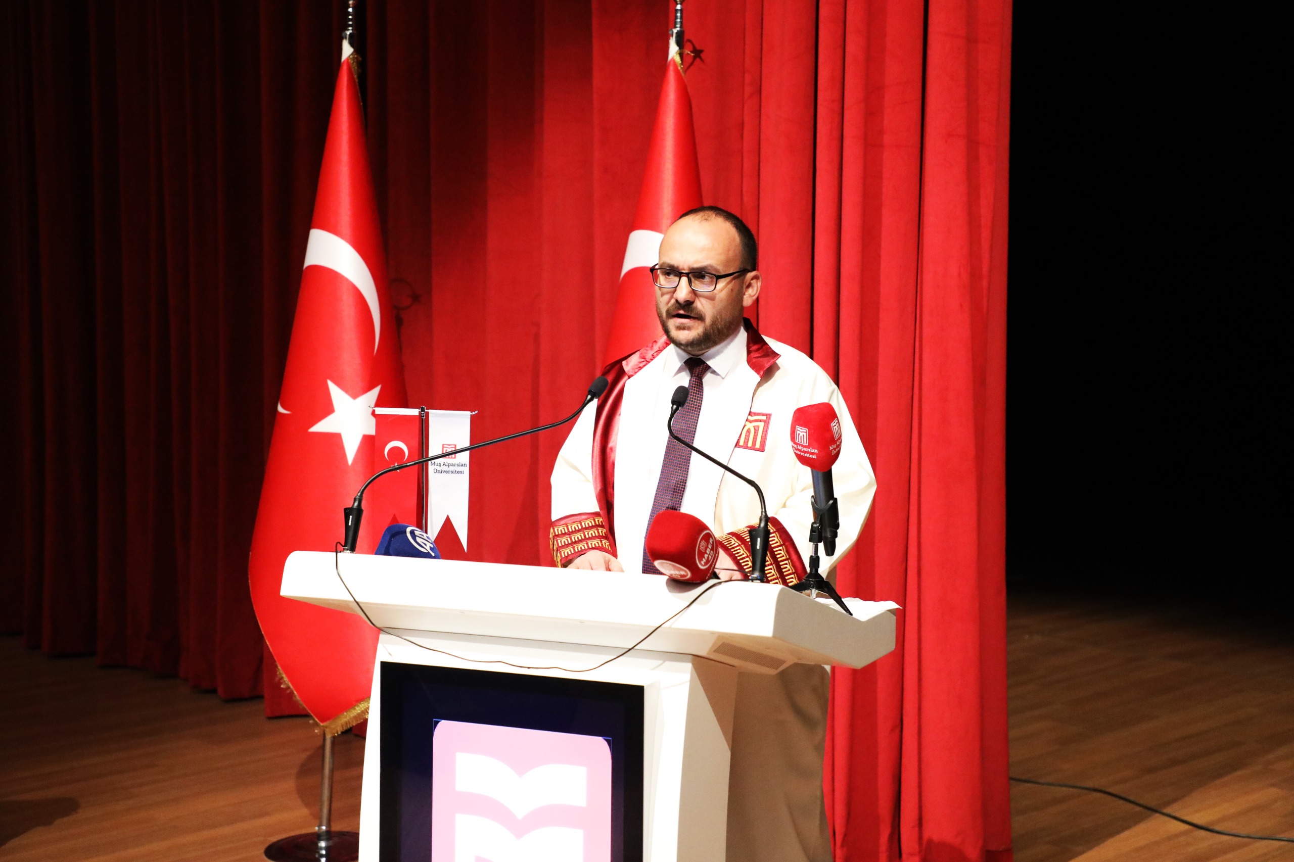 Rektörümüz Prof. Dr. Alican, açılış konuşmasına ilmin, aklın ve erdemin bir toplumun geleceğini inşa eden en güçlü unsurlar olduğunu vurgulayarak başladı. Üniversitelerin sadece bina ve mekânlardan ibaret olmadığını, aksine bir milletin zihinsel ve kültürel ilerleyişinin kalbi olduğunu belirtti.