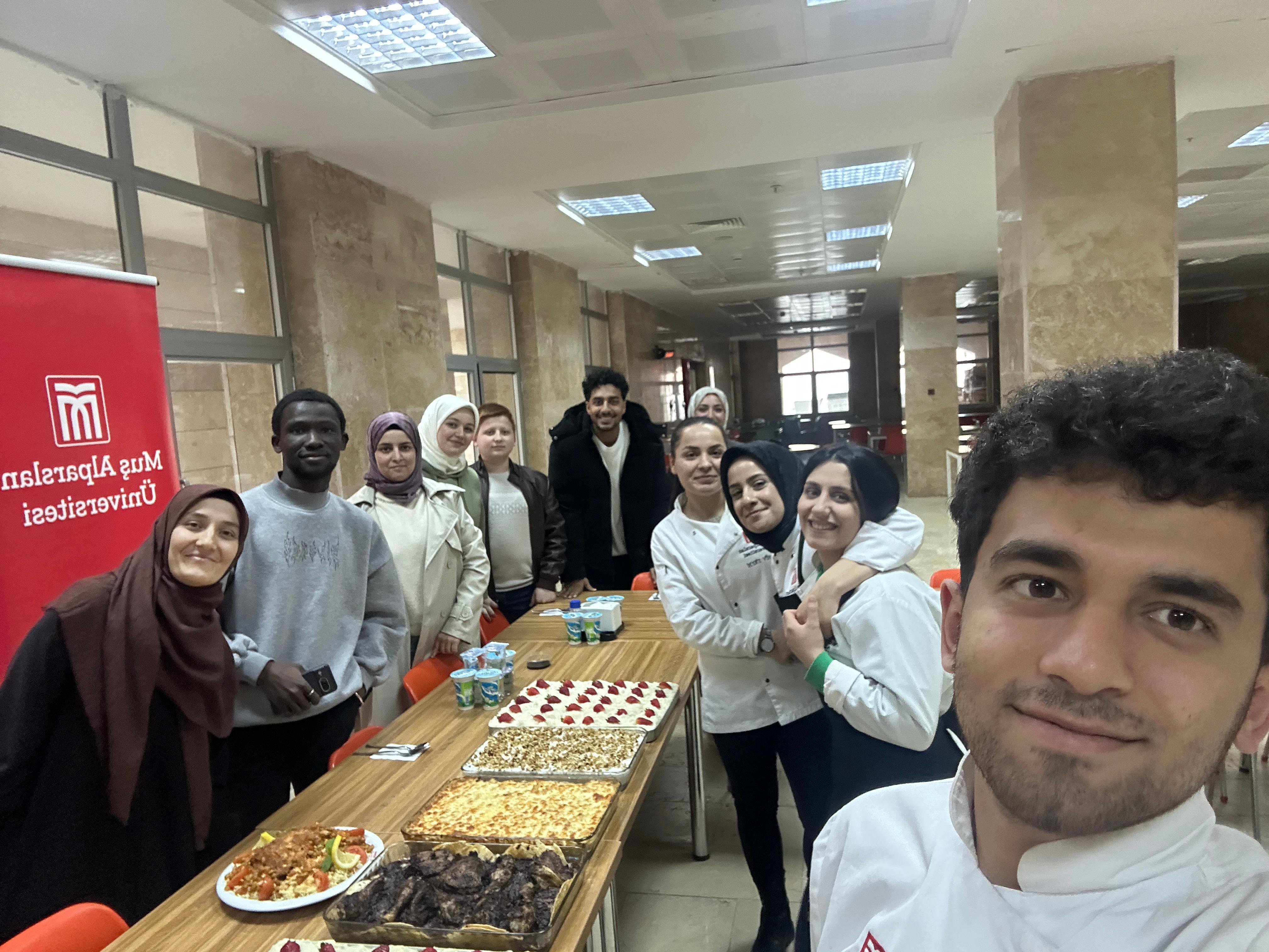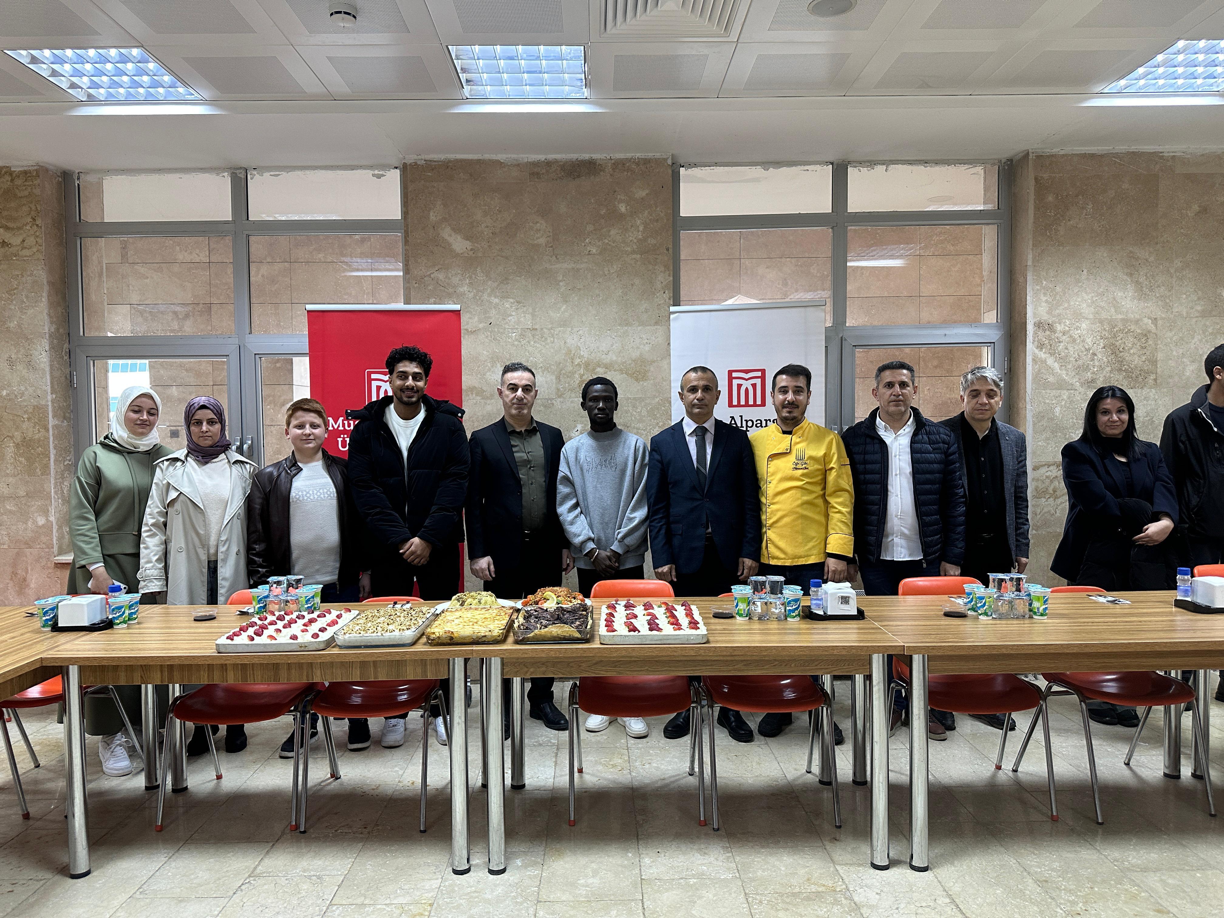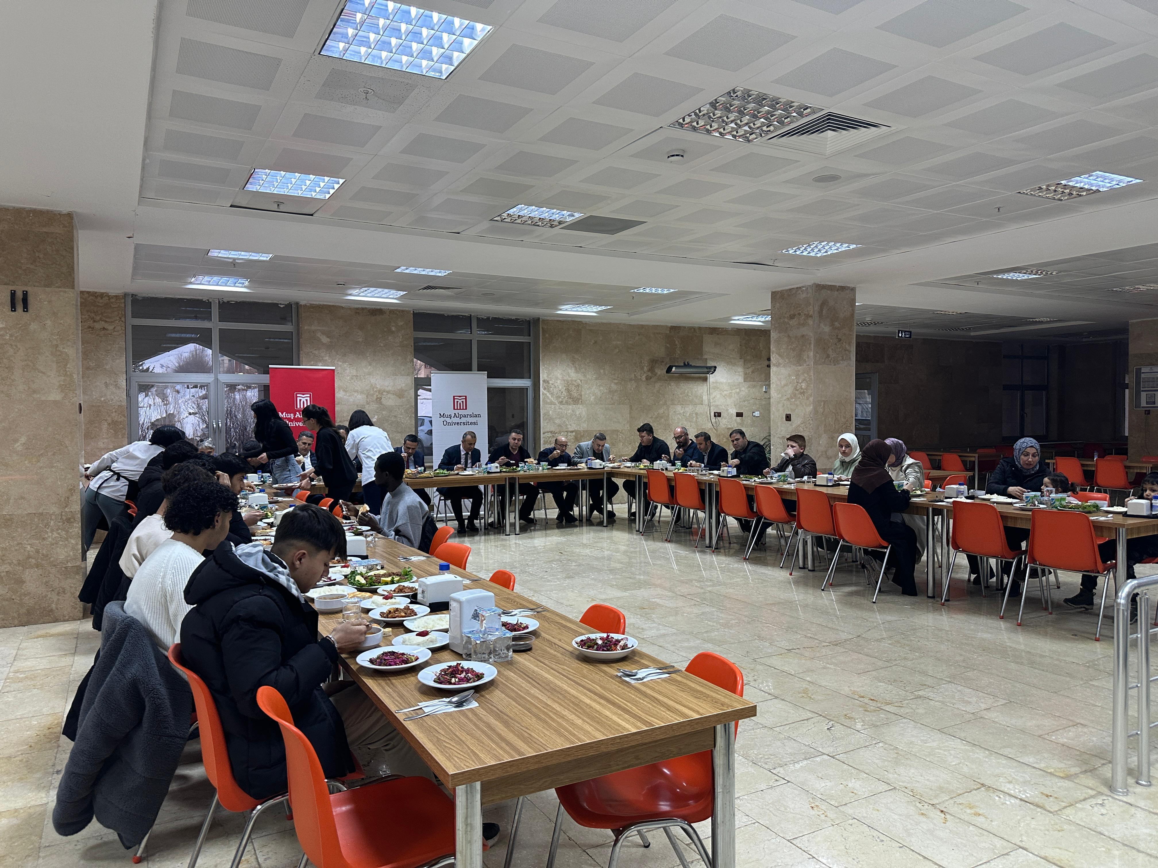 Muş Alparslan Üniversitesi'nde Ramazan ayının manevi atmosferinde yabancı uyruklu öğrencilerimiz için özel bir iftar programı düzenledi. Sosyal Bilimler Meslek Yüksekokulu Otel, Lokanta ve İkram Hizmetleri Bölümü, Aşçılık Programı tarafından gerçekleştirilen etkinliğe, Türkçe ve Yabancı Dil Öğretimi Uygulama ve Araştırma Merkezi’nde (TÖMER) eğitim gören öğrenciler de katıldı.