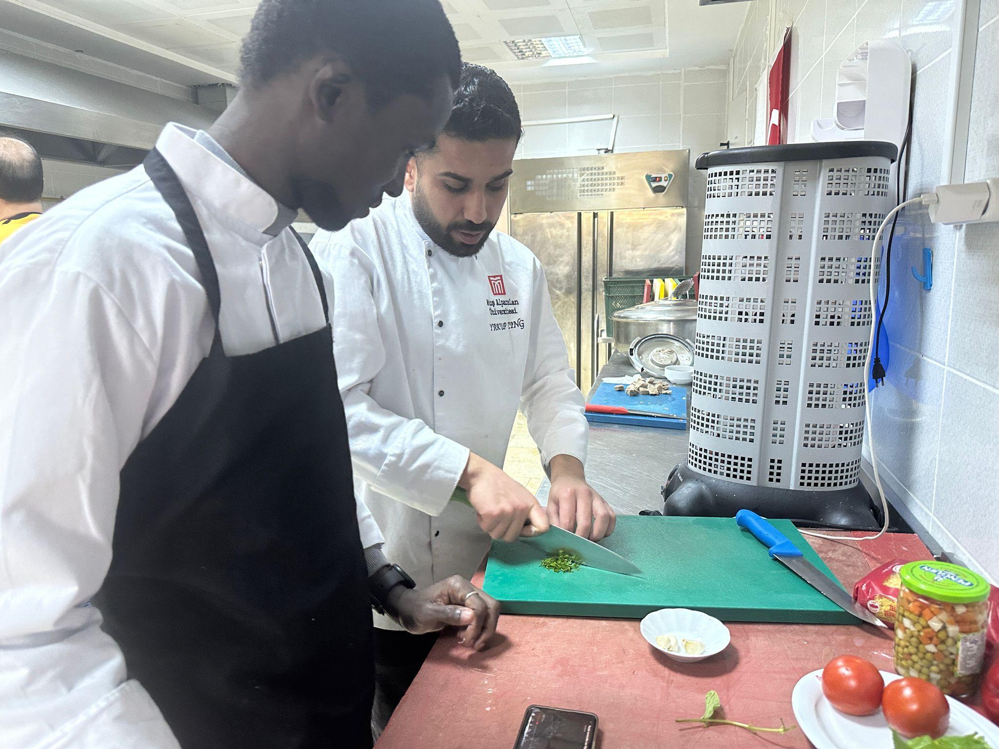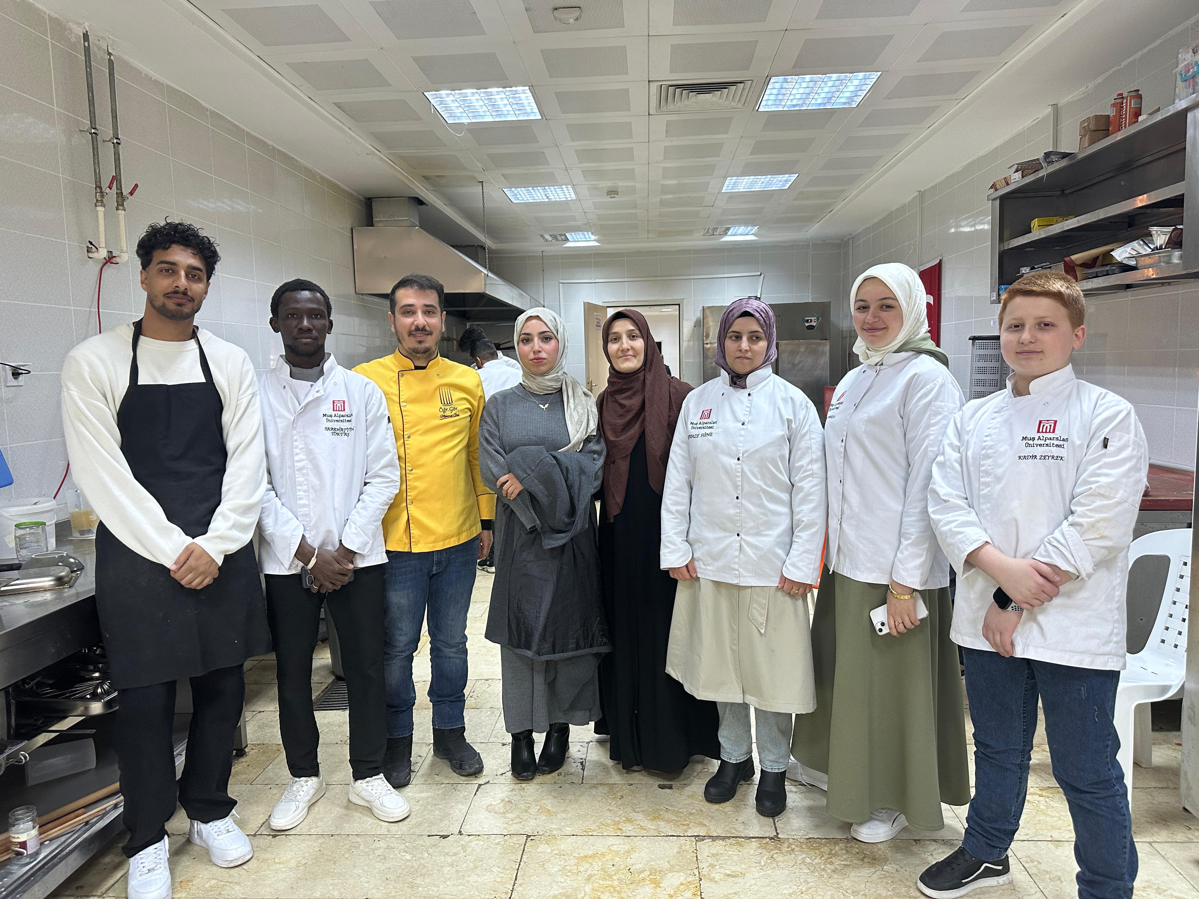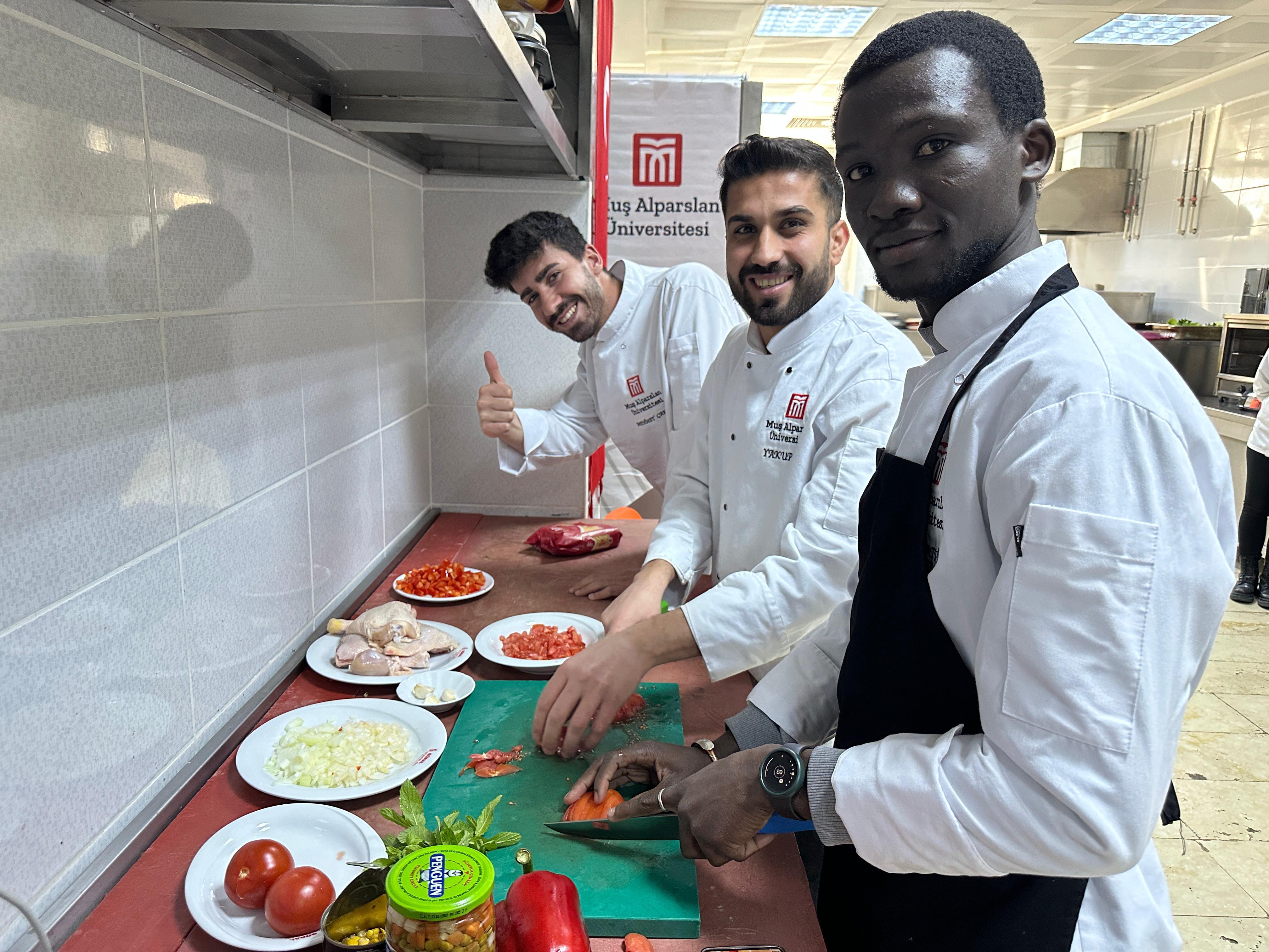 Muş Alparslan Üniversitesi'nde Ramazan ayının manevi atmosferinde yabancı uyruklu öğrencilerimiz için özel bir iftar programı düzenledi. Sosyal Bilimler Meslek Yüksekokulu Otel, Lokanta ve İkram Hizmetleri Bölümü, Aşçılık Programı tarafından gerçekleştirilen etkinliğe, Türkçe ve Yabancı Dil Öğretimi Uygulama ve Araştırma Merkezi’nde (TÖMER) eğitim gören öğrenciler de katıldı.