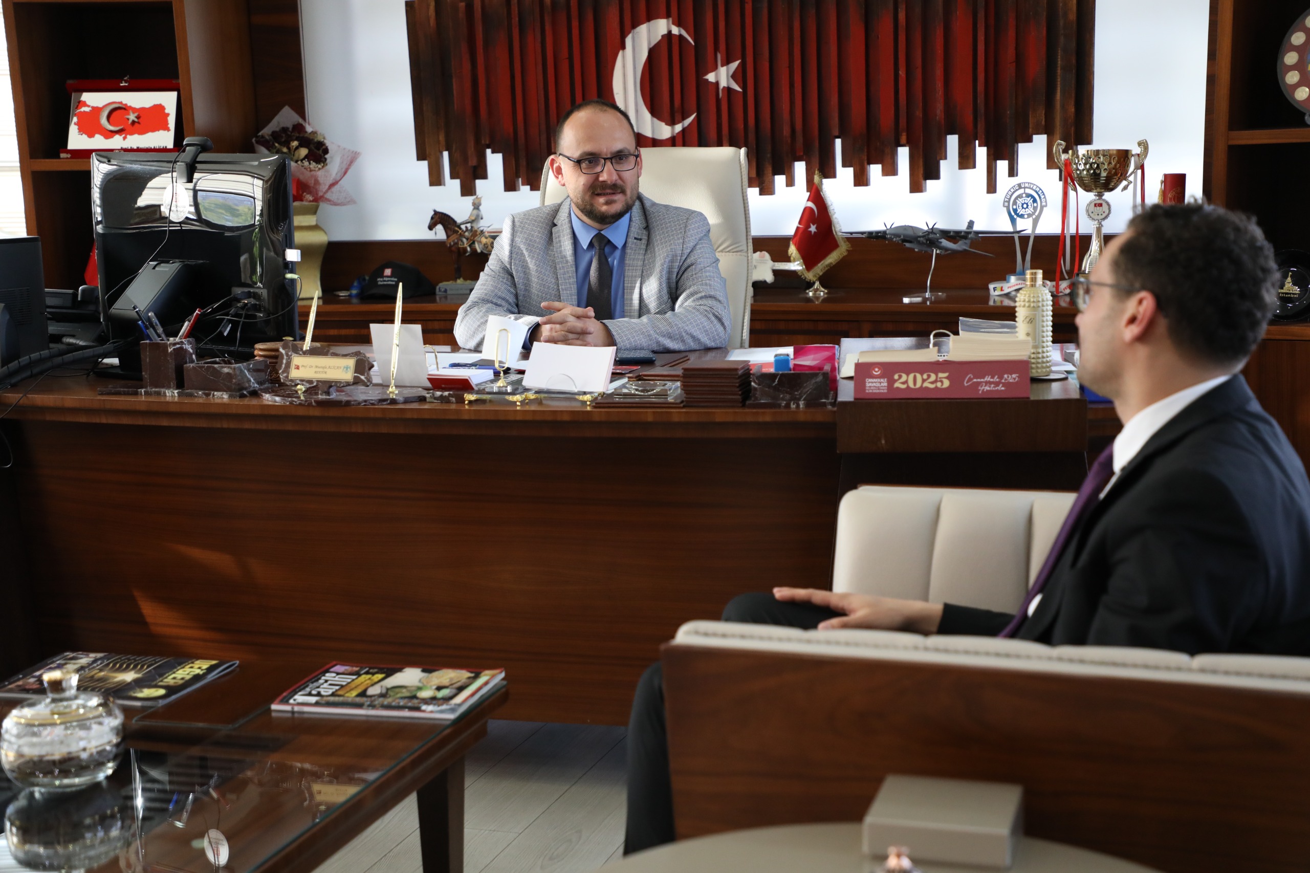 Muş Devlet Hastanesi Başhekimi Uzm. Dr. Yalçın Güzelel, Rektörümüz Prof. Dr. Mustafa Alican’ı makamında ziyaret etti.