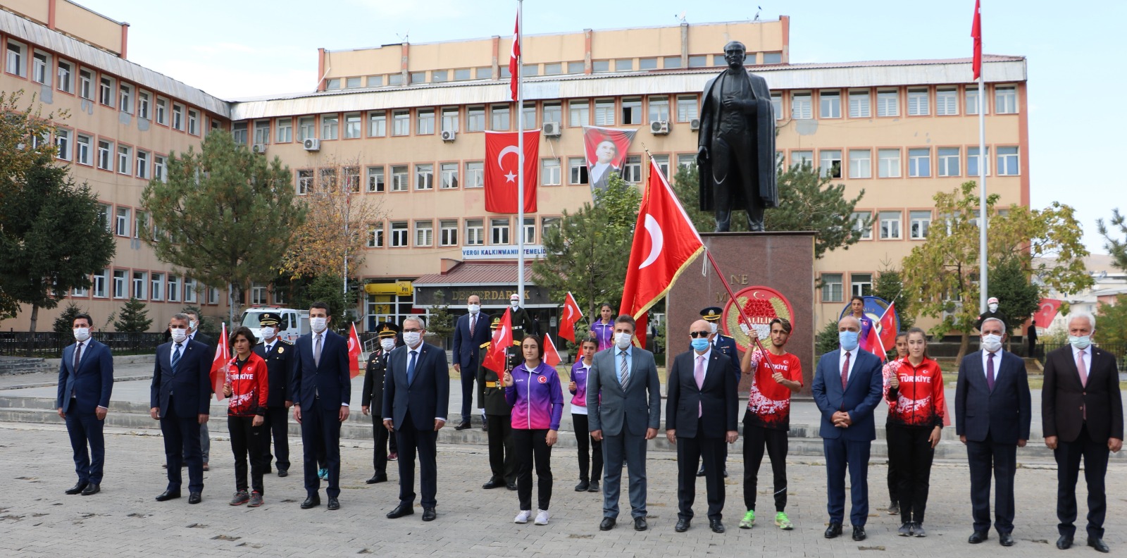 Muş Valiliği tarafından 29 Ekim Cumhuriyet Bayramı kutlamaları kapsamında çelenk sunma töreni gerçekleştirildi. 28 Ekim Çarşamba günü (bugün) saat 13.00’te valilikte bulunan Atatürk anıtının önünde başlayan törene Rektörümüz Prof. Dr. Fethi Ahmet Polat da katılım gösterdi.