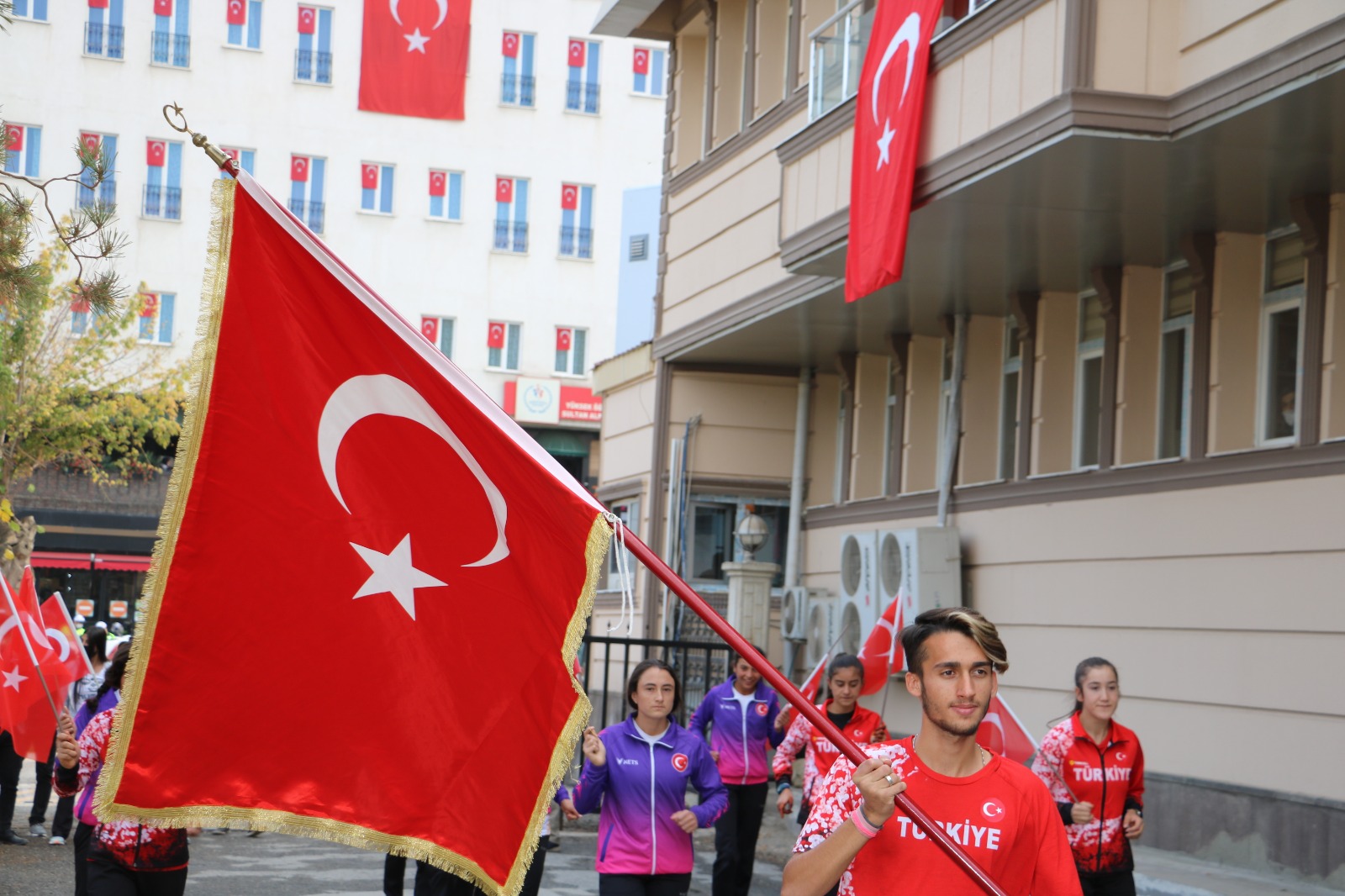 Program, Atatürk ve şehitlerimiz anısına saygı duruşuyla başladı. Ardından İstiklal Marşı eşliğinde Türk bayrağı göndere çekildi. Tören, Vali Doç. Dr. İlker Gündüzöz ve Belediye Başkan Vekili Aydın Özarslan tarafından Atatürk anıtına çelenklerin sunulmasıyla devam etti. Tören kapsamında il sporcuları Vali Gündüzöz’e sancak tesliminde bulundu.