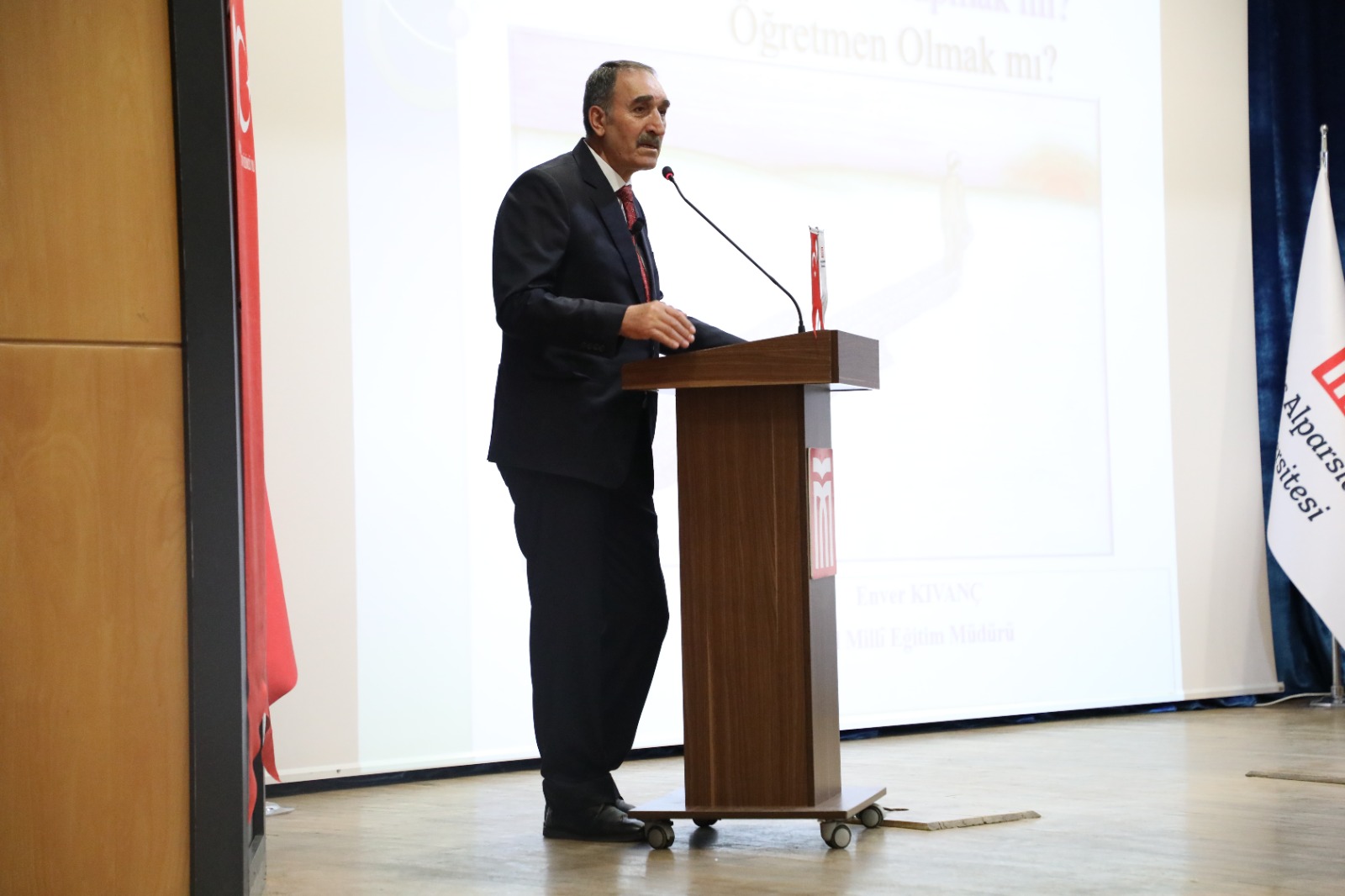 Üniversitemizde düzenlenen “Öğretmen Olmak mı? Öğretmenlik Yapmak mı?” başlıklı program kapsamında, emekli İl Millî Eğitim Müdürü Enver Kıvanç ağırlandı.