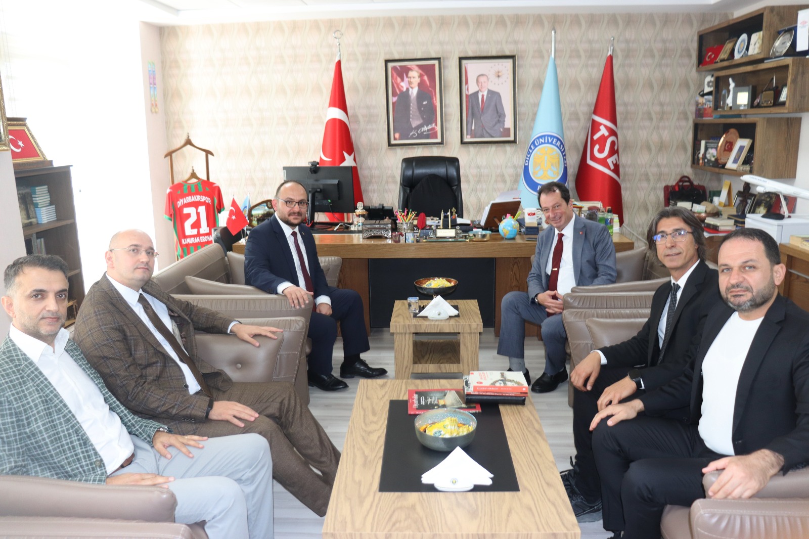 Rektörümüz Prof. Dr. Mustafa Alican, çeşitli temaslarda bulunmak üzere gittiği Diyarbakır’da Dicle Üniversitesi Rektörü Prof. Dr. Kamuran Eronat’ı makamında ziyaret etti.
