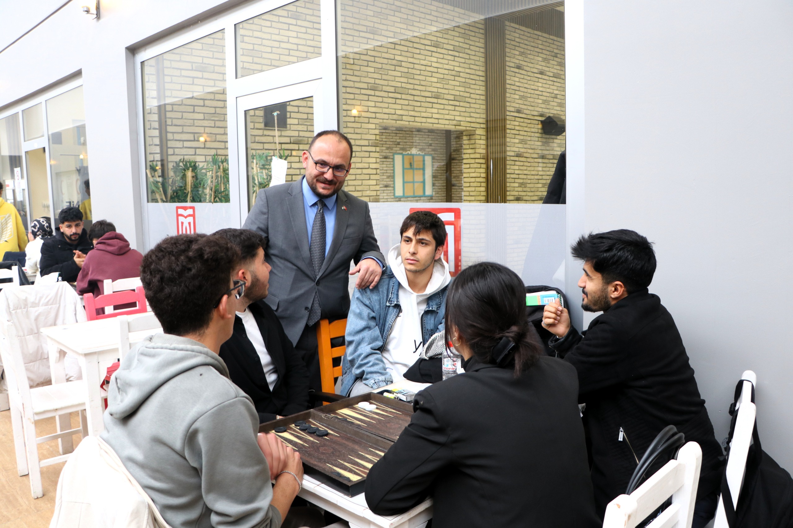 Rektörümüz Prof. Dr. Mustafa Alican, üniversite çarşısında faaliyete başlayan yeni bir işletmenin açılış programına katıldı. Açılış töreninde işletme sahipleri ve öğrencilerle bir araya gelen Rektörümüz, üniversite yerleşkesinde öğrenci yaşamını destekleyen hizmet alanlarının gelişmesinin önemine dikkat çekti.