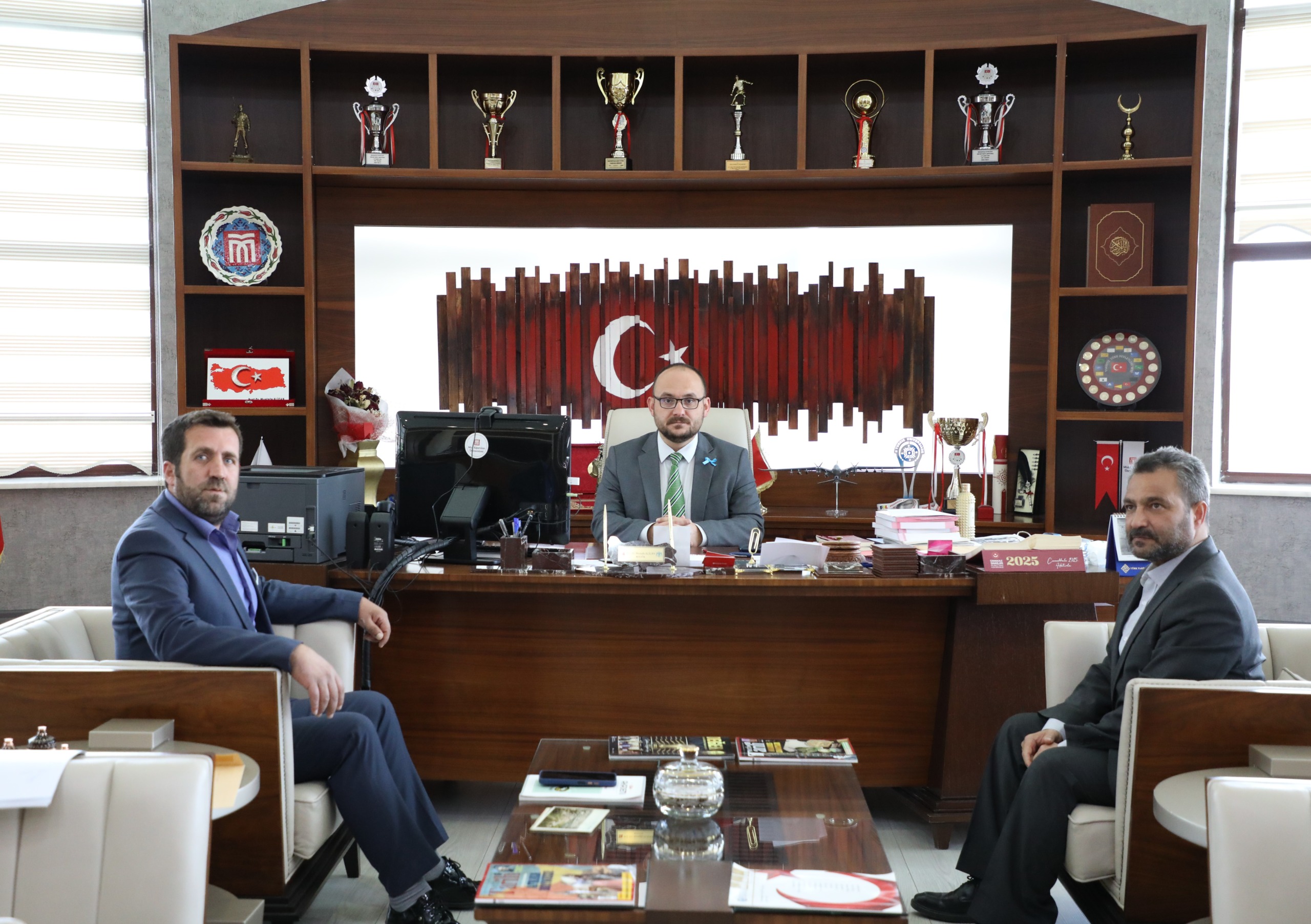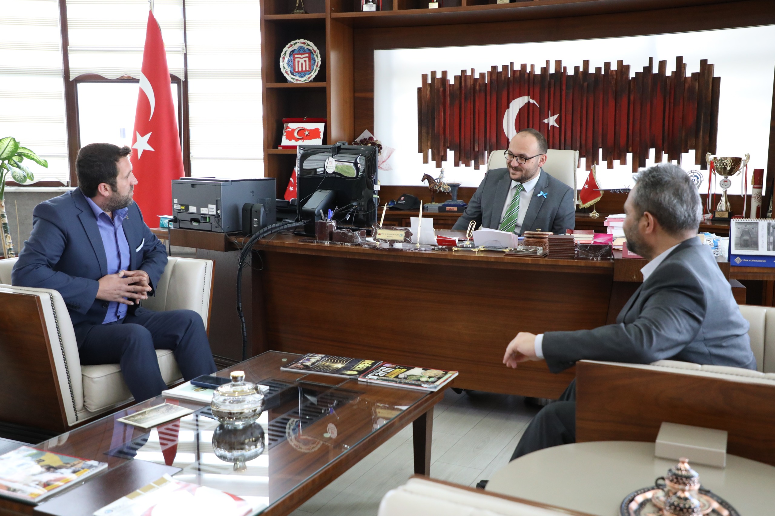 Rektörümüz Prof. Dr. Mustafa Alican, Terörle Mücadele Vazife Kahramanları Şehit ve Gazi Aileleri Yardımlaşma ve Dayanışma Derneği Muş Şube Başkanı Gökmen Taylan ile Asılsız Soykırım İddialarıyla Mücadele Derneği (ASİMDER) Genel Başkanı Turhan Sur’u makamında kabul etti.