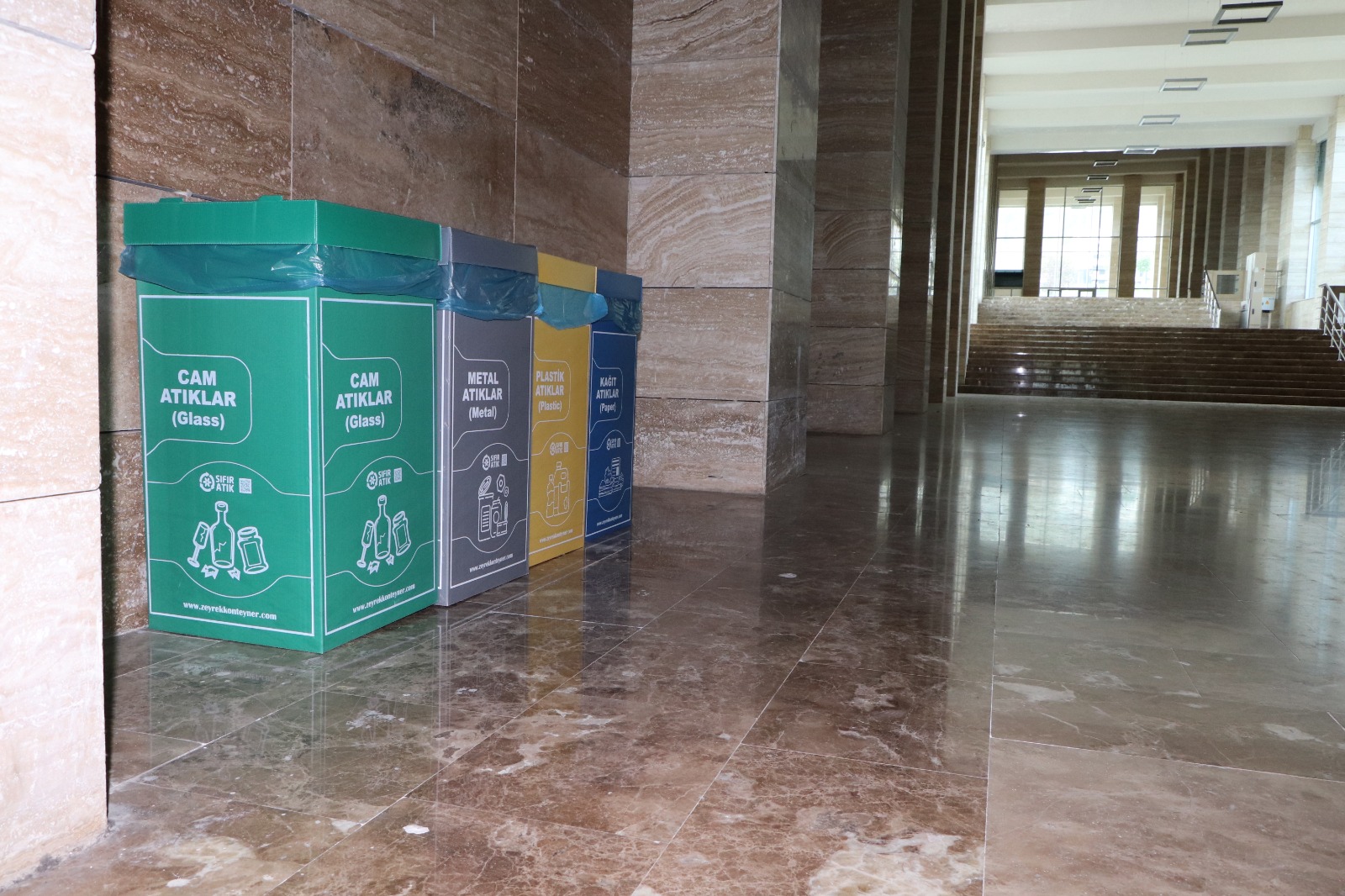 240.000’lik yatırımla temin edilen 1257 adet atık toplama kutusu üniversitemizde belirlenen alanlara yerleştirilerek atık ayrımı yerinde yapılacak. Proje kapsamında atık biriktirme için 70 litrelik 300 (1200 kutu) takım iç mekan, 120 litrelik 10 takım (50 adet) dış mekan ve geçici depolama için 770 litrelik 7 adet konteyner iç ve dış mekanlara yerleştirilmeye başlanıldı.