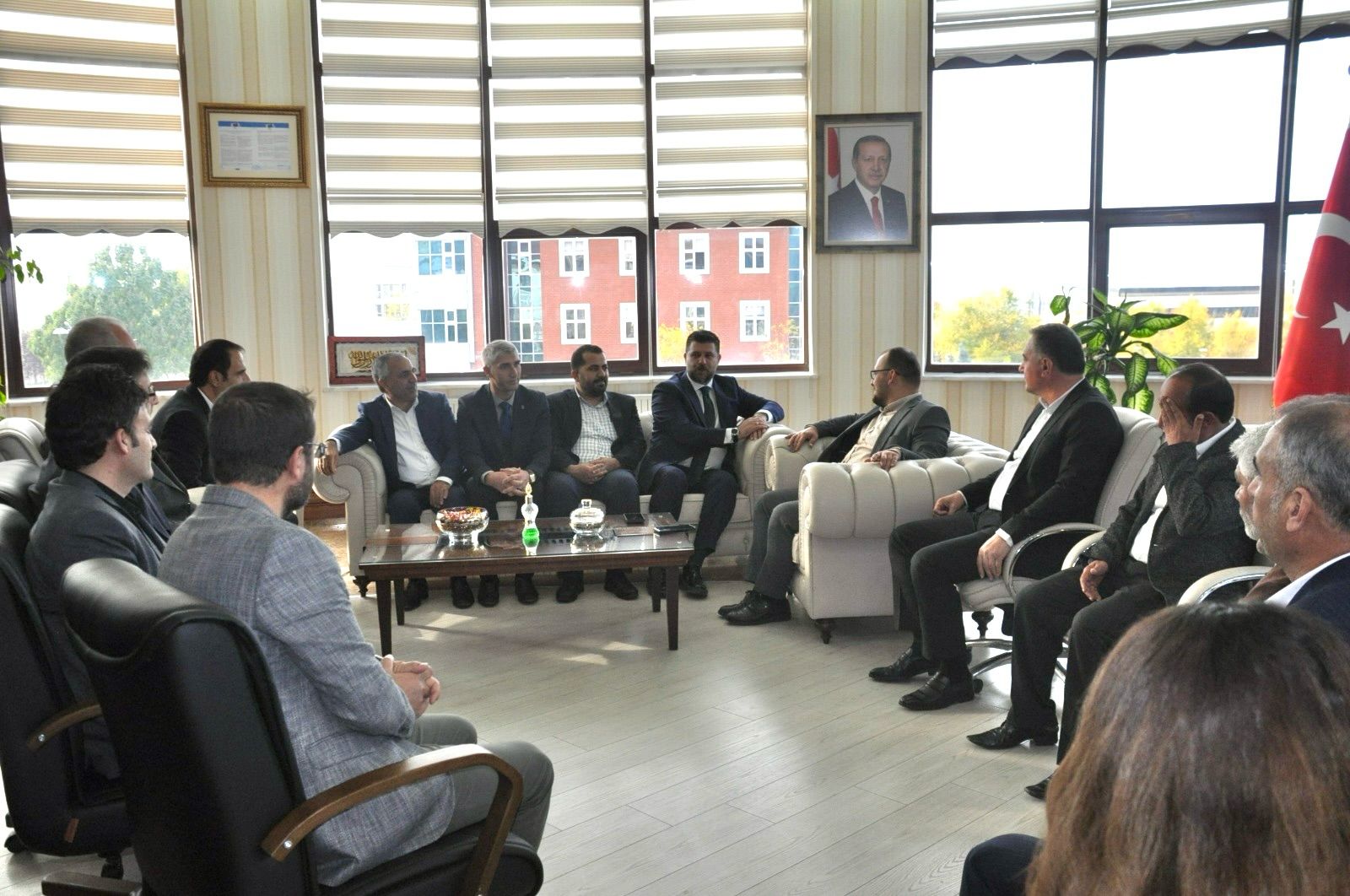 AK Party Muş Provincial Chairman Melik Emre, Bulanık Vocational School Director Assoc. Dr. İrşad Sami Yuca and his accompanying delegation visited Prof. Dr. Mustafa Alican. During the visit to the Rector's office, Rector Alican thanked his guests for their kind visit.