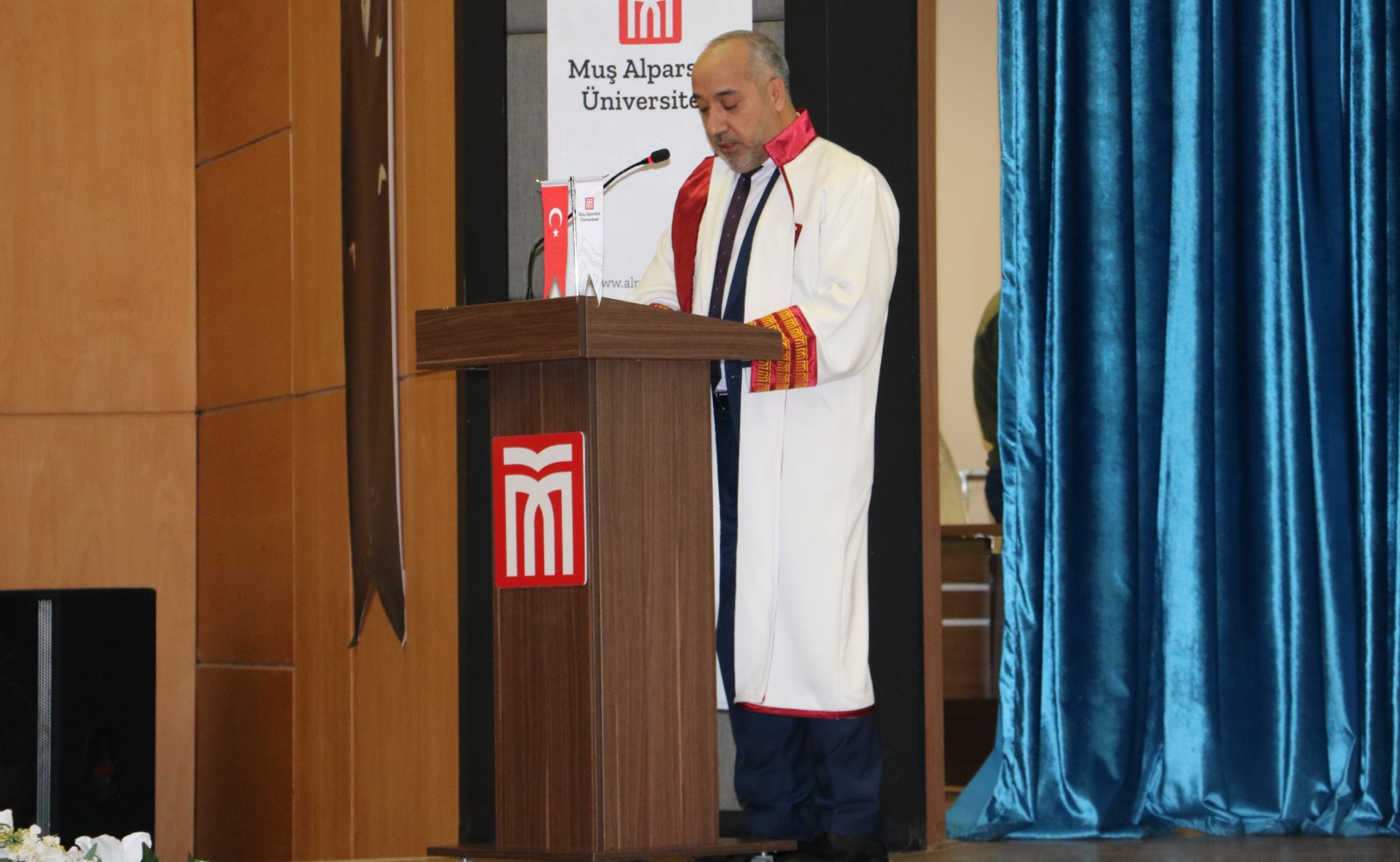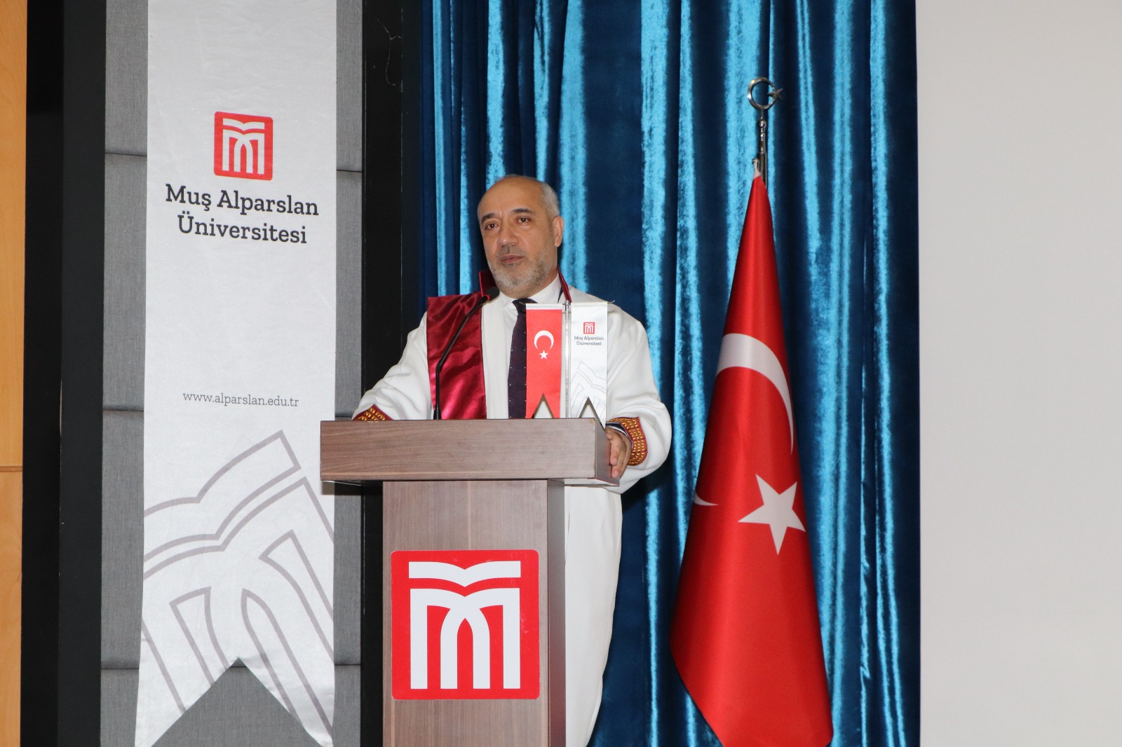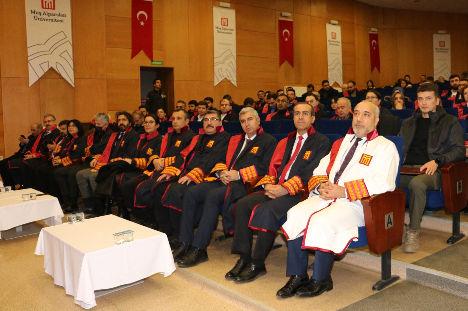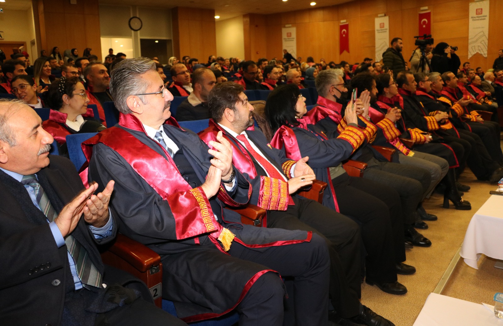 Prof. Dr. Sabahattin Zaim Konferans Salonu’nda düzenlenen törene, cübbe giyen öğretim üyeleri ile birlikte rektör yardımcıları, dekanlar, meslek yüksek okulu müdürleri, akademik ve idari personel katıldı.