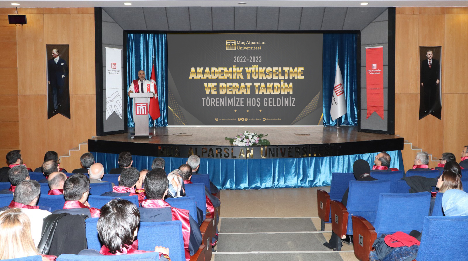 Üniversitemizde akademik unvanı yükselen öğretim üyeleri için “Akademik Yükseltme ve Berat Takdim” töreni düzenlendi. Törende 100 öğretim üyesi cübbe giydi.