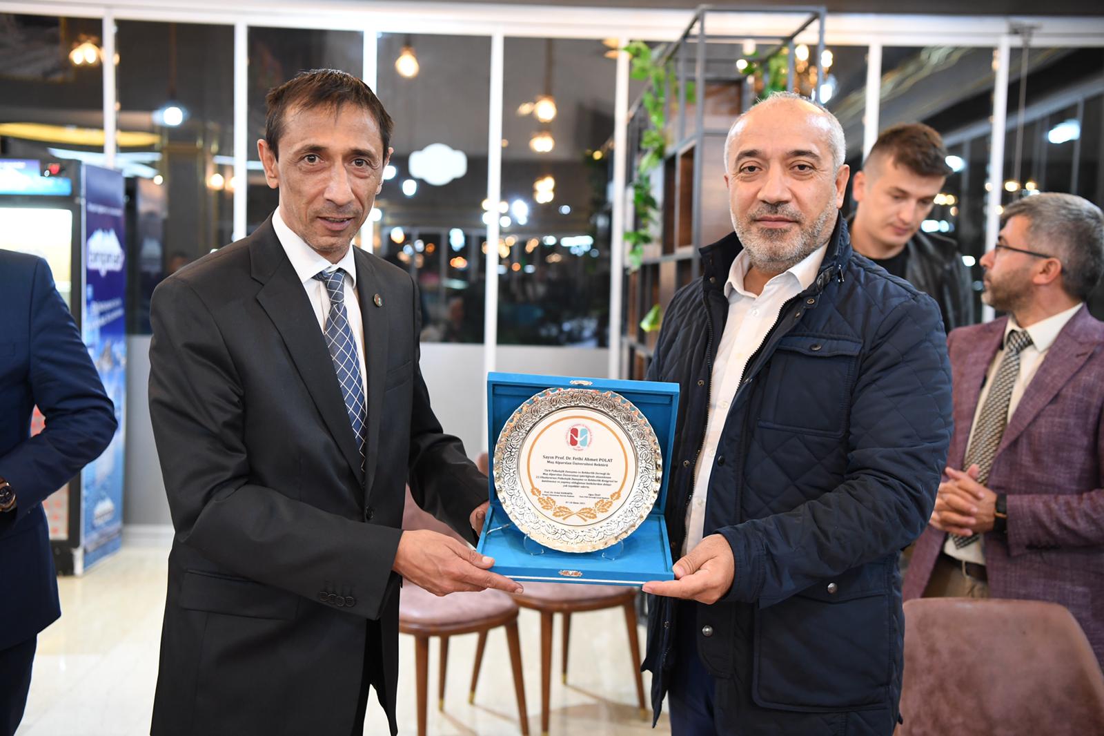 Kapanış oturumunun ardından kongre ekibi toplu akşam yemeği için alandan ayrıldı. Akşam yemeğine Rektörümüz Prof. Dr. Fethi Ahmet Polat ve eşi Nilüfer Polat Hanımefendi de katıldı. Muş Belediye Başkan Yardımcıları Aydın Özarslan ve Hamdullah Karasu'nun da katılım gösterdiği yemek organizasyonunda Uzman Psikolojik Danışman Oğuz Özat tarafından Rektör Polat'a plaket takdim edildi. Konuklar, 9 Ekim Cumartesi günü (yarın) gerçekleştirilecek olan kültür turuna katıldıktan sonra Muş’a veda edecek.