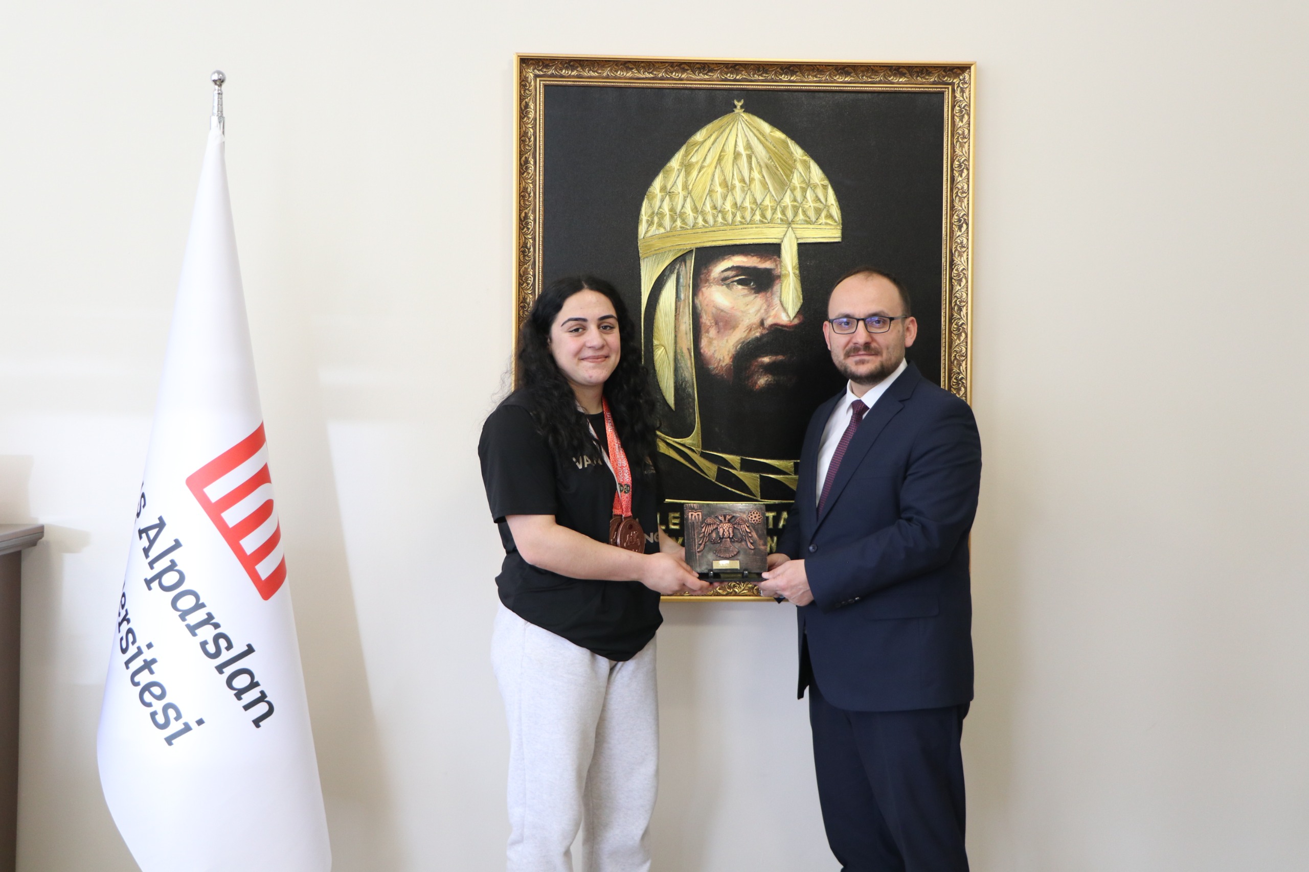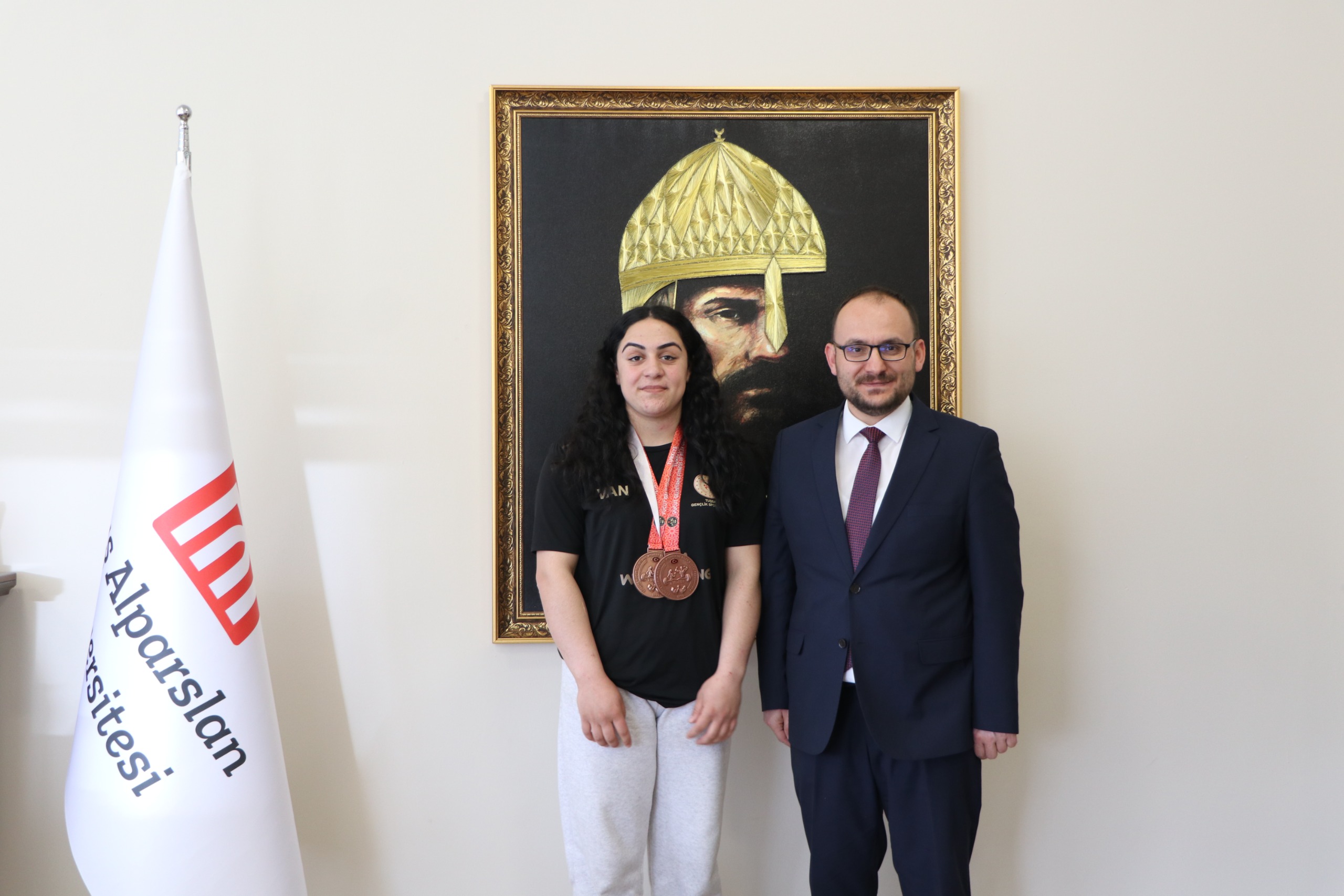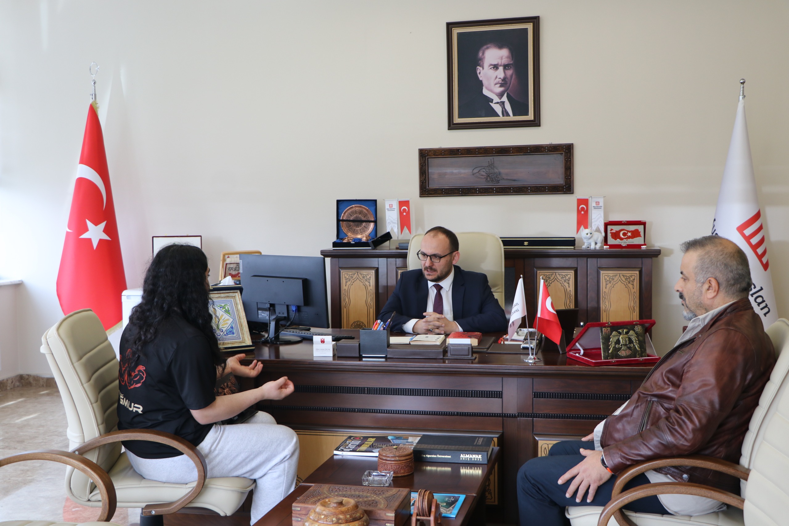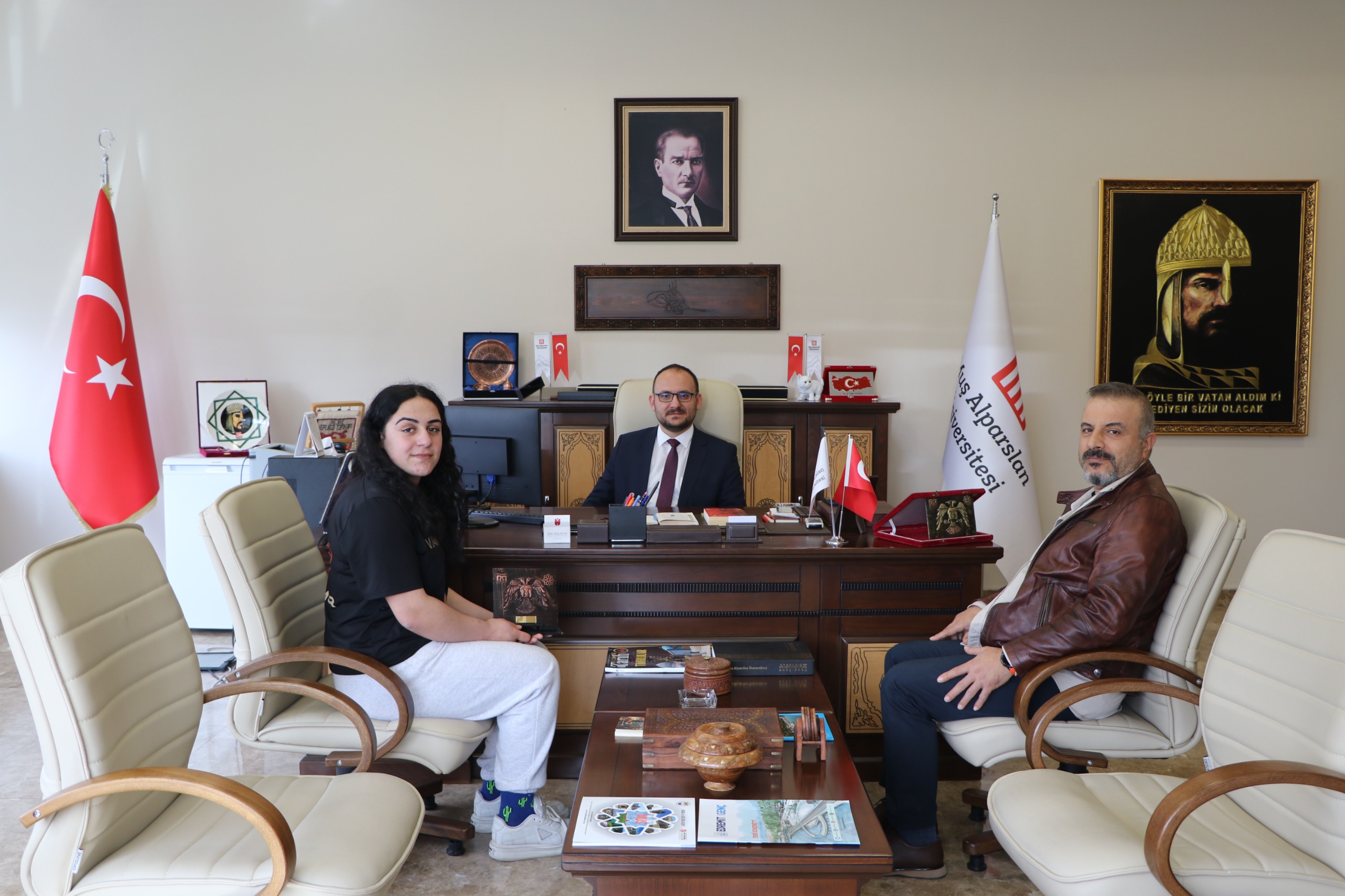 7–12 Nisan tarihleri arasında Kayseri’de düzenlenen Türkiye Bilek Güreşi Şampiyonası ve Avrupa Şampiyonası Milli Takım seçmelerinde Sağ ve Sol Kol 80 kiloda Türkiye üçüncüsü olan Spor Bilimleri Fakültesi Spor Yöneticiliği 1. sınıf öğrencimiz Yağmur Kumli, Rektörümüz Prof. Dr. Mustafa Alican’ı ziyaret etti.