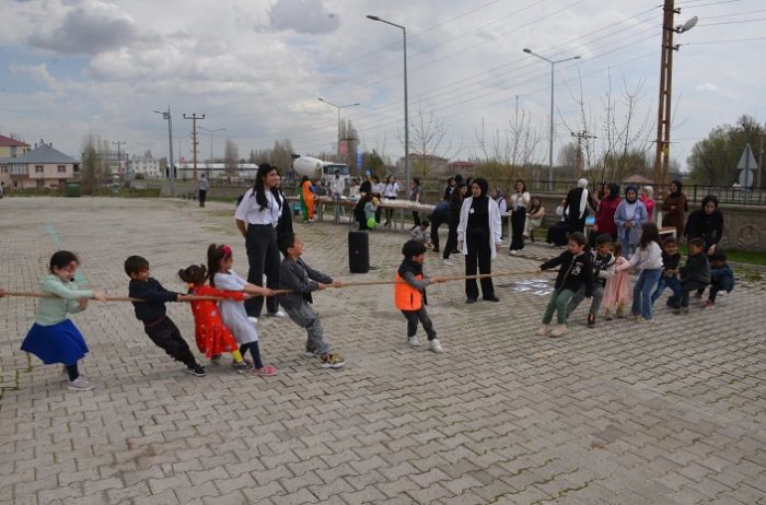Bulanık MYO bahçesinde düzenlenen etkinlikte 5-6 yaş grubu çocuklarla oyunlar oynayan Bulanık MYO Çocuk Bakımı ve Gençlik Hizmetleri Bölümü öğrencileri çeşitli oyun ve şarkılarla çocukların bayramını kutladı.