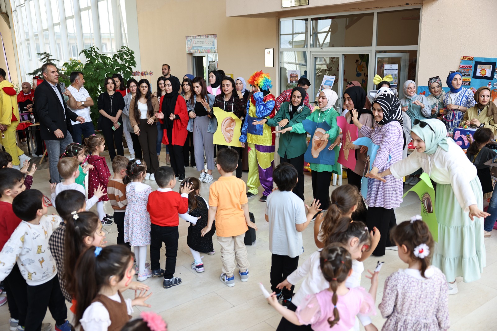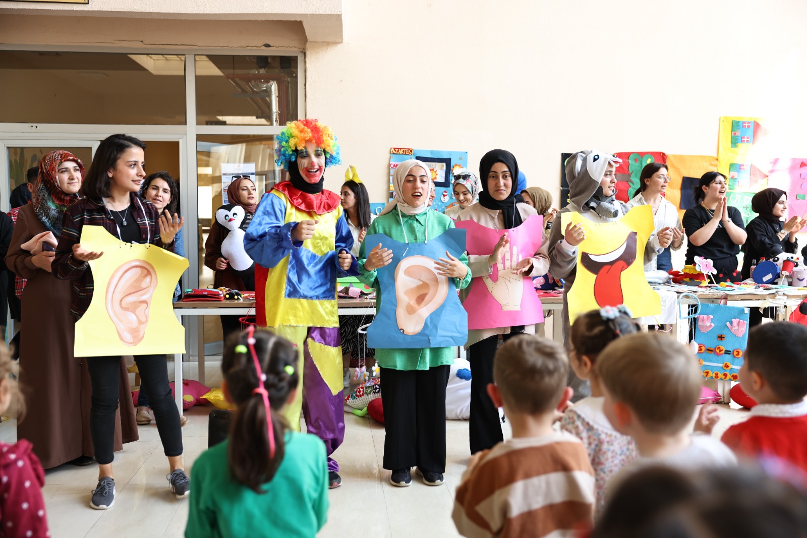 Çocuk Bakımı ve Gençlik Hizmetleri Bölüm Başkanı Dr. Öğr. Üyesi Ferhat Çiftçi'nin koordinatörlüğüyle Öğr. Gör. Filiz Altıparmak Ercan ve Öğr. Gör. Dr. Burcu Güley'in dersleri kapsamında hazırlanan sergiye Rektörümüz Prof. Dr. Mustafa Alican, Genel Sekreterimiz Harun Demir, Rektör Danışmanımız Doç. Dr. Mehmet Özalper, Sağlık Hizmetleri Meslek Yüksek Okulu Müdürümüz Dr. Öğr. Üyesi Necmettin Çiftçi, Sağlık Bilimleri Fakültesi Dekan Yardımcımız Dr. Öğretim Üyesi Özmen İstek, Sağlık Hizmetleri Meslek Yüksekokulu müdür yardımcıları, öğretim görevlileri, Özel Lale Bahçesi Anaokulu ve Özel Mavi Düşler Gündüz Bakımevinde görevli öğretmen ve anaokulu öğrencileri katılım gösterdi. Sergilenen drama çalışmalarının ardından çocuklara balon hediye edildi.