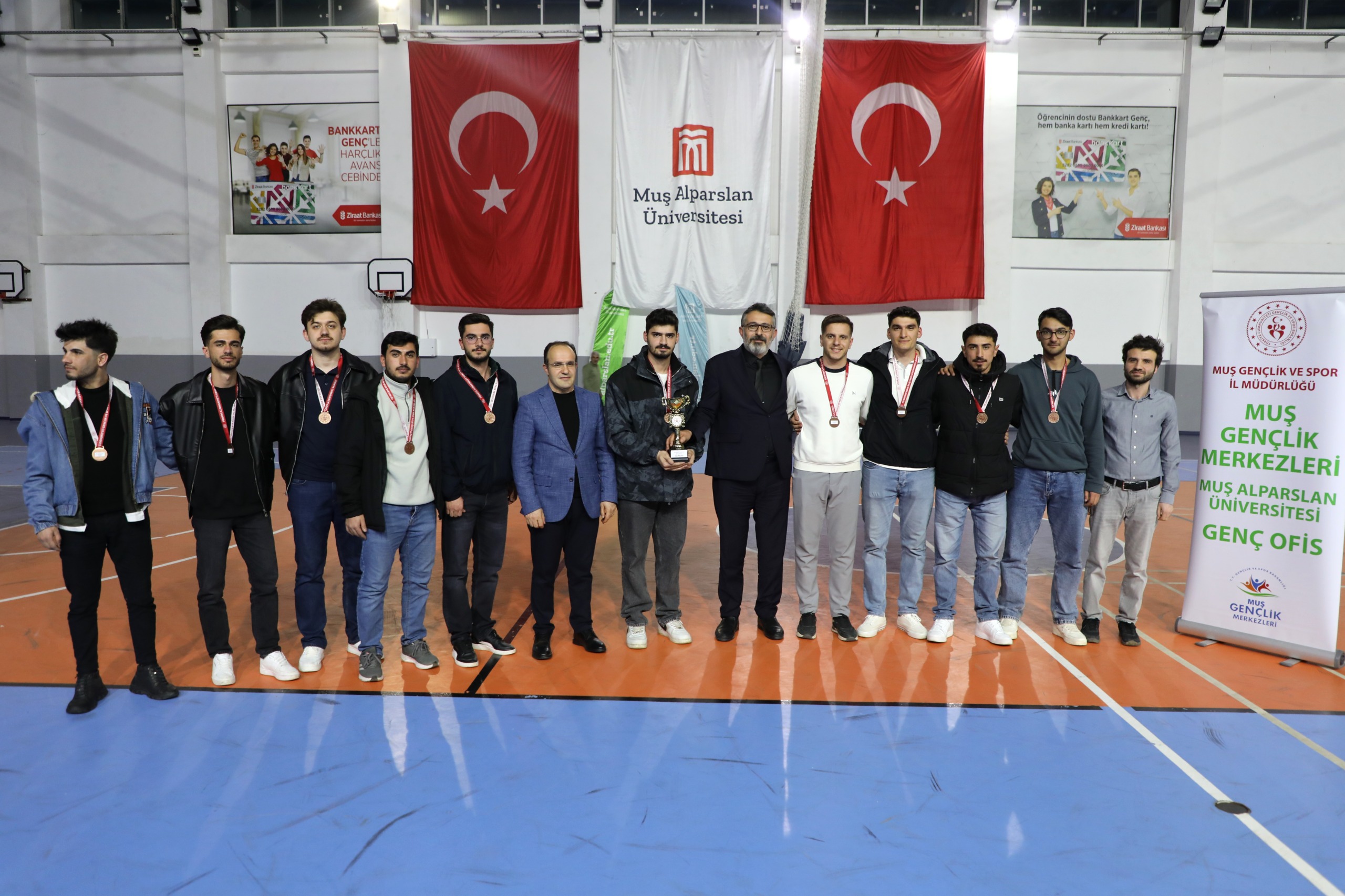 İl Gençlik ve Spor Müdürlüğü, MAUN Genç Ofis ve SKS Daire Başkanlığı iş birliğiyle gerçekleştirilen turnuvanın final töreninde büyük coşku yaşandı. Dereceye giren takımlara kupa ve madalyalarını; Rektör Yardımcısı Prof. Dr. Selçuk Sağır, Eğitim Fakültesi Dekanı Prof. Dr. Esin Kaya ve Genel Sekreter Doç. Dr. Salih Gülen takdim etti.
