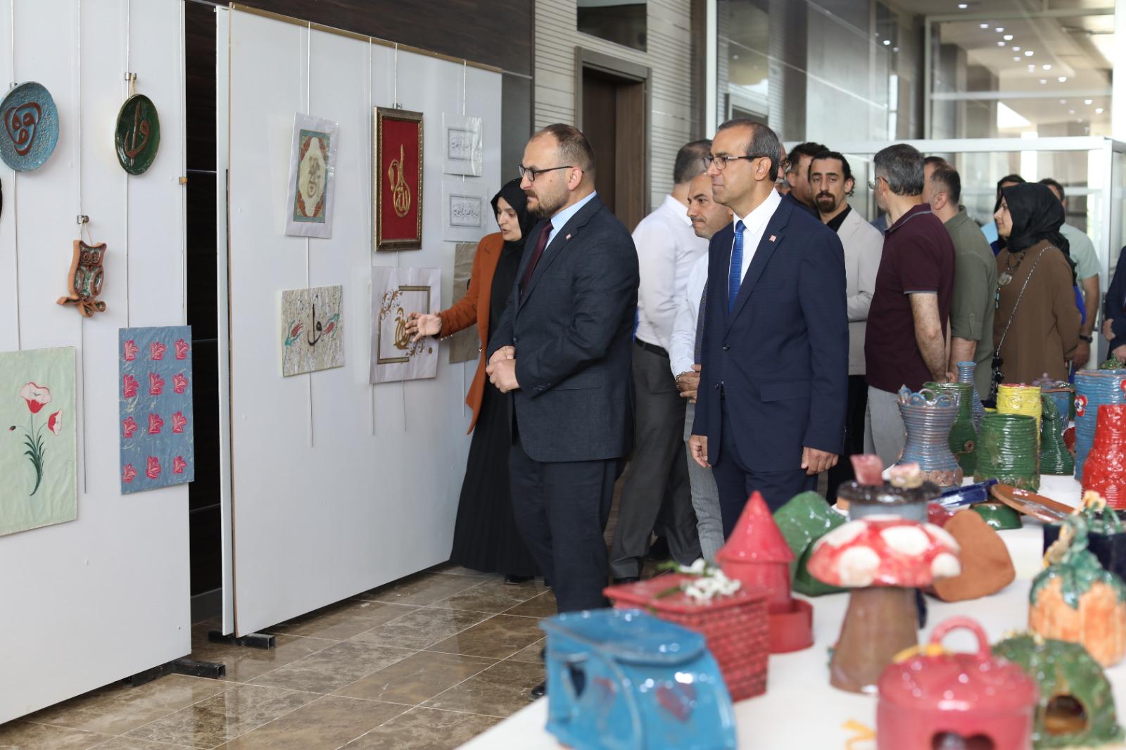 Üniversitemiz Teknik Bilimler Meslek Yüksekokulu, El Sanatları Bölümü, Mimari Dekoratif Sanatlar Programı 2’nci sınıf öğrencilerinin iki yıl içerisinde yapmış olduğu çalışmaların yer aldığı ‘Mimari Dekoratif Sanatlar Programı Mezuniyet Sergisi’nin açılışı, 1071 Malazgirt Kongre ve Kültür Merkezinde yer alan fuaye alanında Rektörümüz Prof. Dr. Mustafa Alican tarafından gerçekleştirildi.