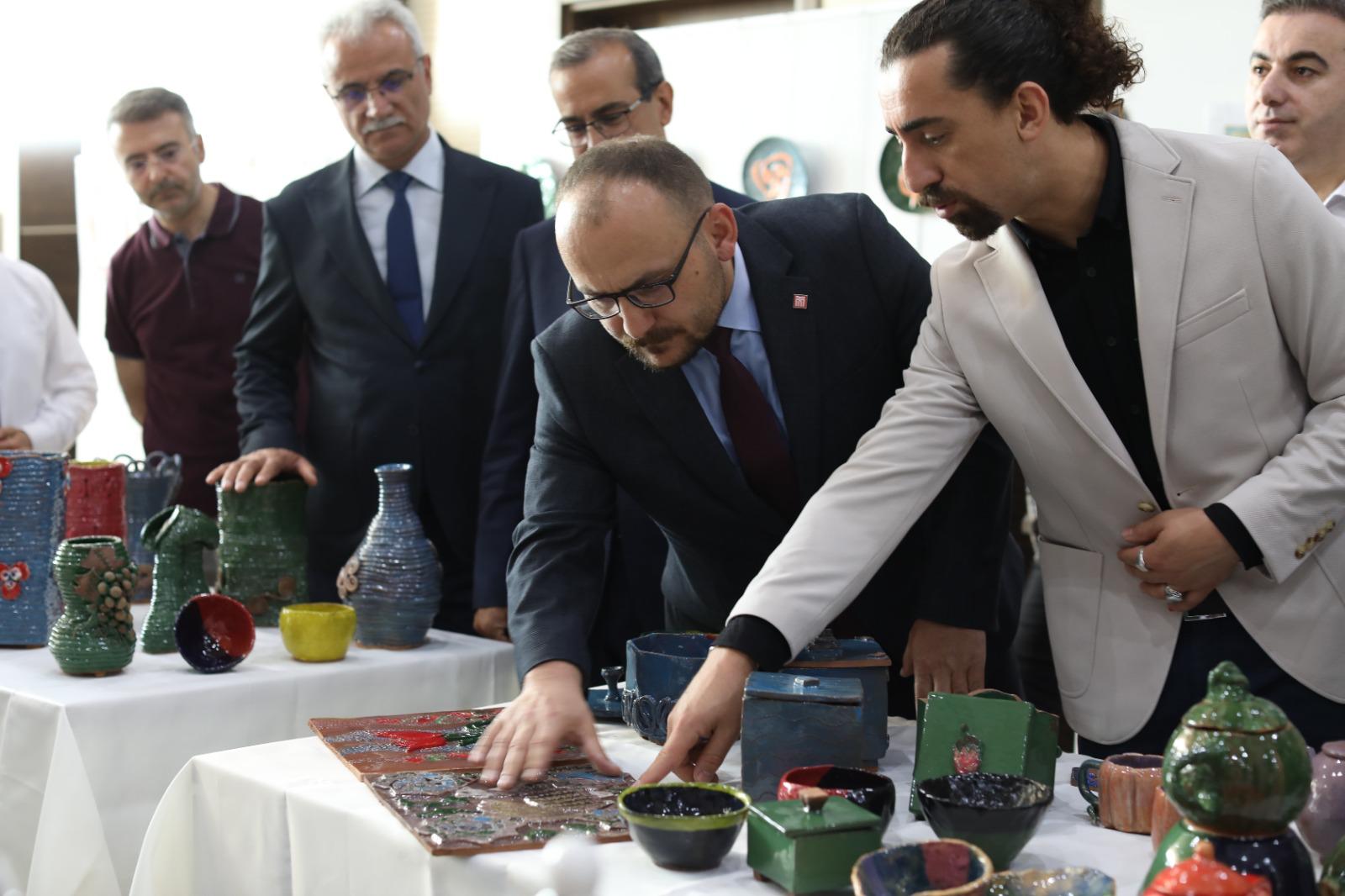 El Sanatları Bölüm Başkanı Öğr. Gör. Mikail Sevindik, “2017 yılında açılan El Sanatları Bölümü her dönem düzenli bir şekilde mezuniyet sergisi gerçekleştirmiştir. 2024 yılı mezuniyet sergimiz bunlardan birisidir ve emek veren tüm öğrencilerimizi kutluyorum. Bölümümüz mezunları, KPSS puanı ile Cumhurbaşkanlığı Milli Saraylar Başkanlığı, Kültür ve Turizm Bakanlığına bağlı müzeler, Milli Eğitim Bakanlığına bağlı Halk Eğitim Merkezleri, Gençlik ve Spor il Müdürlükleri, Valilikler ve Belediyeler tarafından açılan mesleki kurslarda istihdam edilmektedir. Mimari Dekoratif Sanatlar Programı 2. sınıf öğrencilerimizin iki yıl süren, eğitim-öğretim yılı içerisinde büyük çabalarla hazırladıkları Tezhip Tasarım, Çini, Seramik, Takı Tasarım, Ebru Sanatı, Özgün Baskı, Temel Sanat Eğitimi, Kalem İşi, Hüsnü Hat, Ahşap Sanatı atölyelerinde üretilen eserlerini sergi açılışında bulunan misafirlerle buluşturmak bizleri çok mutlu etti.