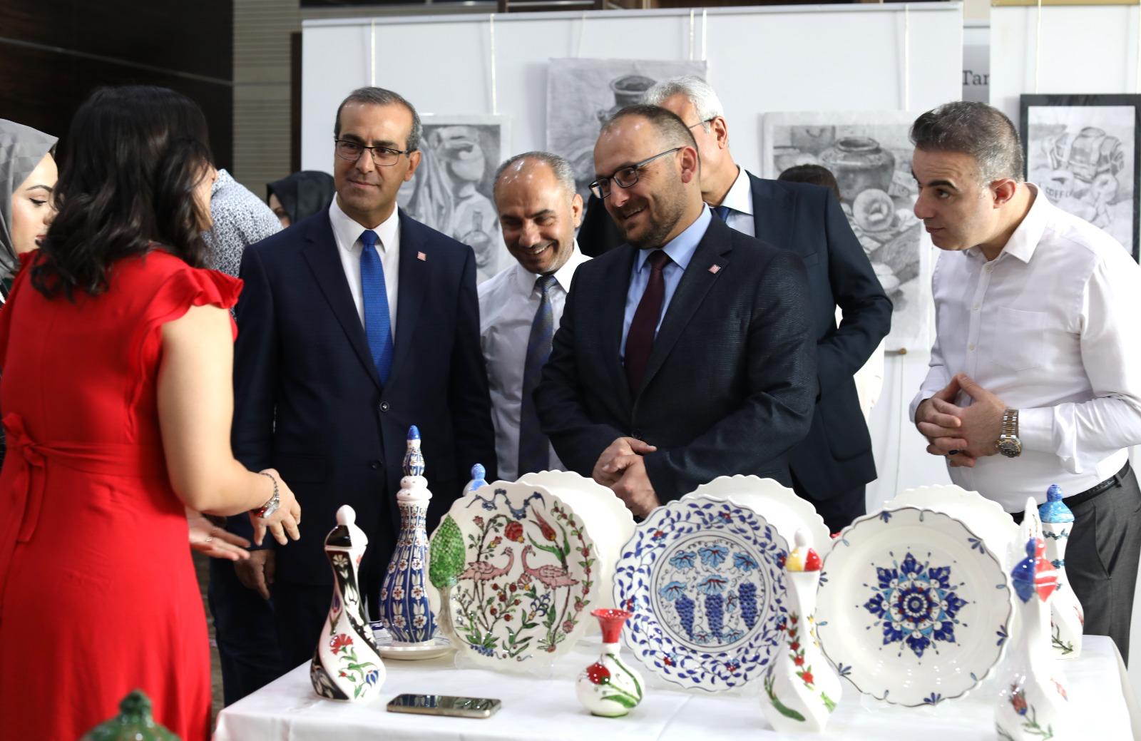 TBMYO El Sanatları Bölümü bünyesinde bulunan Mimari Dekoratif Sanatlar programı öğrencilerinin yapmış oldukları sergide; Tezhip Tasarım, Çini, Seramik, Takı Tasarım, Ebru Sanatı, Özgün Baskı, Temel Sanat Eğitimi, Kalem İşi, Hüsnü Hat, Ahşap Sanatı gibi derslerde tasarlanan ve uygulaması yapılan eserlerden derlenmiş yaklaşık 165 çalışma sergiye gelen misafirlerin beğenisine sunuldu.