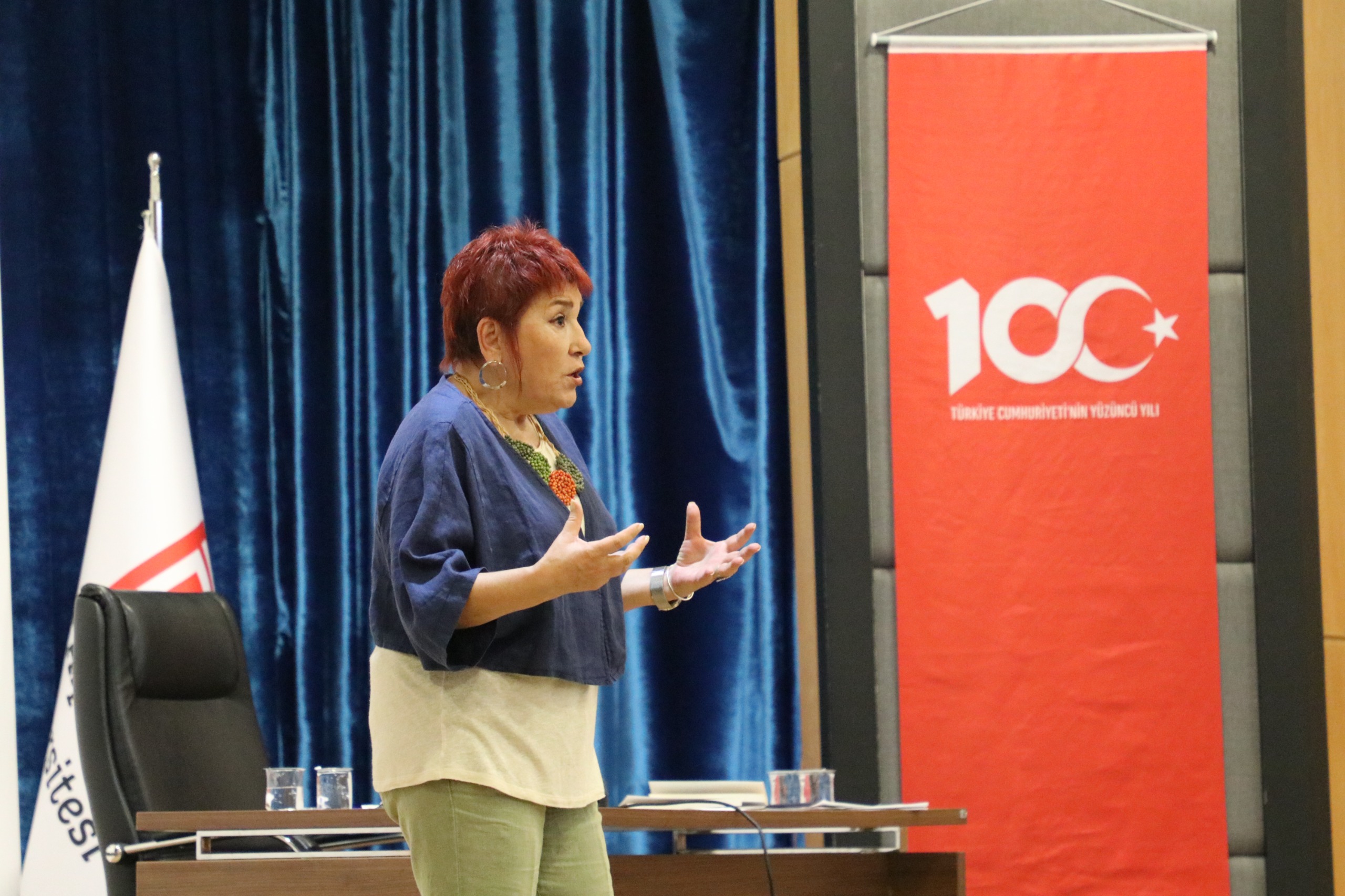 Fen Edebiyat Fakültesi tarafından düzenlenen "Felsefe Öğrencilerle Buluşuyor Bahar Etkinlikleri V" kapsamında gerçekleştirilen konferansta, akademisyen ve düşünür Prof. Dr. Solmaz Zelyüt, "Felsefe Ne İşe Yarar?" başlıklı bir konuşma yaptı.
