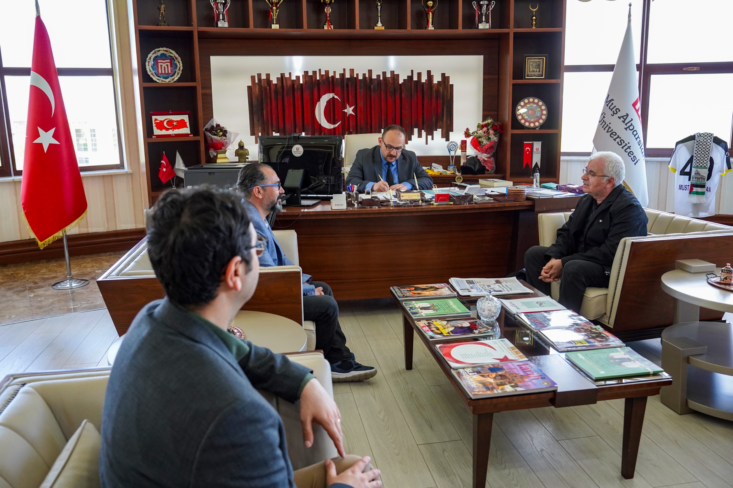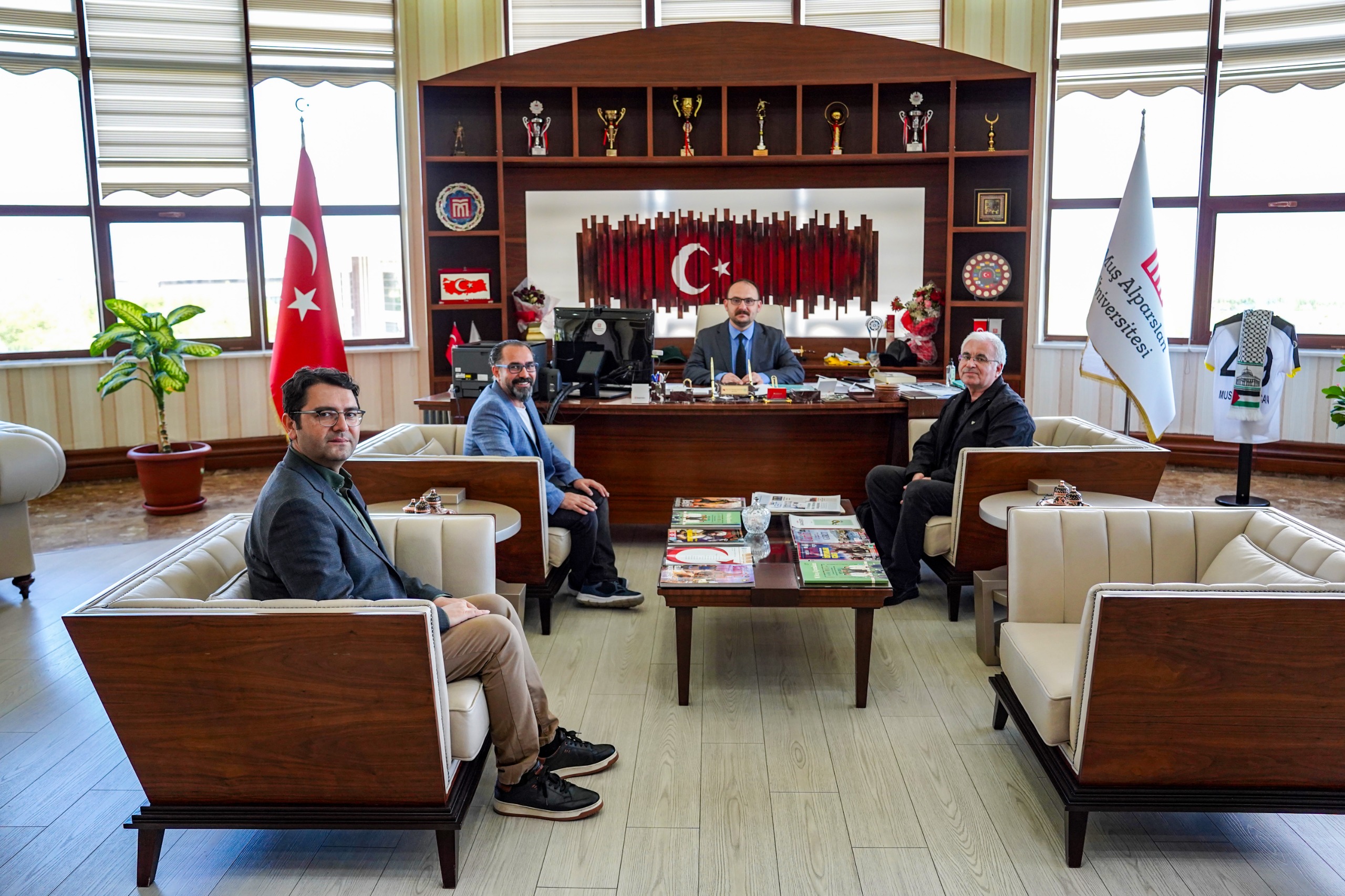 Soru ve cevaplarla sona eren programın ardından Rektörümüz Prof. Dr. Mustafa Alican, Doç. Dr. Mustafa Günay’ı makamında ağırladı.