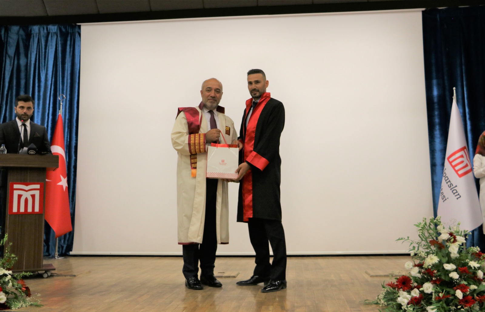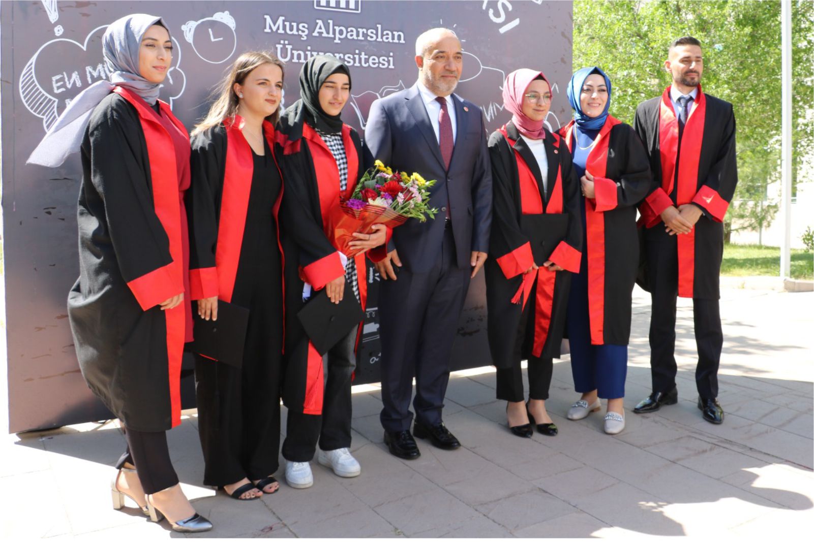 Rektörümüz Prof. Dr. Fethi Ahmet Polat’ın iştirak ettiği programa Vali Doç. Dr. İlker Gündüzöz ile eşi Doç. Dr. Meşide Gündüzöz, Belediye Başkan Vekili Hamdullah Karasu, Cumhuriyet Başsavcısı Hüseyin Yavuz, Emniyet Müdürü Engin Kaloğlu, İl Jandarma Komutanı Albay İlhan Şen, Gençlik ve Spor İl Müdürü Emrullah Güler, Milli Eğitim Müdürü Enver Kıvanç, İl Müftüsü Halil İbrahim Demir, Malazgirt Kaymakamı Yiğit Yaşar Demirer, Korkut Kaymakamı Oğuzhan Ocak, Hasköy Kaymakamı Kübra Demirer, Sungu Belediye Başkanı Mehmet Salih Gürtürk, Rektör Yardımcılarımız Prof. Dr. Yaşar Karadağ, Prof. Dr. Ulaş Çaydaş, Genel Sekreter Harun Demir, akademik ve idari birim amirleri ile personeli ve öğrencilerimizle aileleri katıldı.