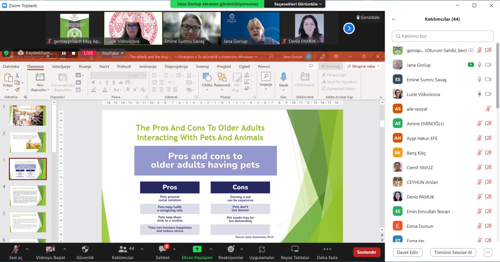 Kongrede Türkiye, İrlanda, Almanya, Çek, Slovenya gibi ülkelerden alanında uzman akademisyenler yaşlanma ve yaşlılık konularını multidisipliner bir şekilde tartıştı. Kongrenin öne çıkan konularından biri yaşlı dostu üniversite kavramı ve bu alanda yapılan çalışmalar oldu. Bununla beraber yaşlılara yönelik sosyal hizmetler, sosyal politikalar, sağlık, yaşam kalitesi, yaşlılık algısı, siyasal katılım, evcil hayvan sahipliği gibi pek çok farklı konunun yaşlanma ile ilişkili olarak incelendiği görüldü.