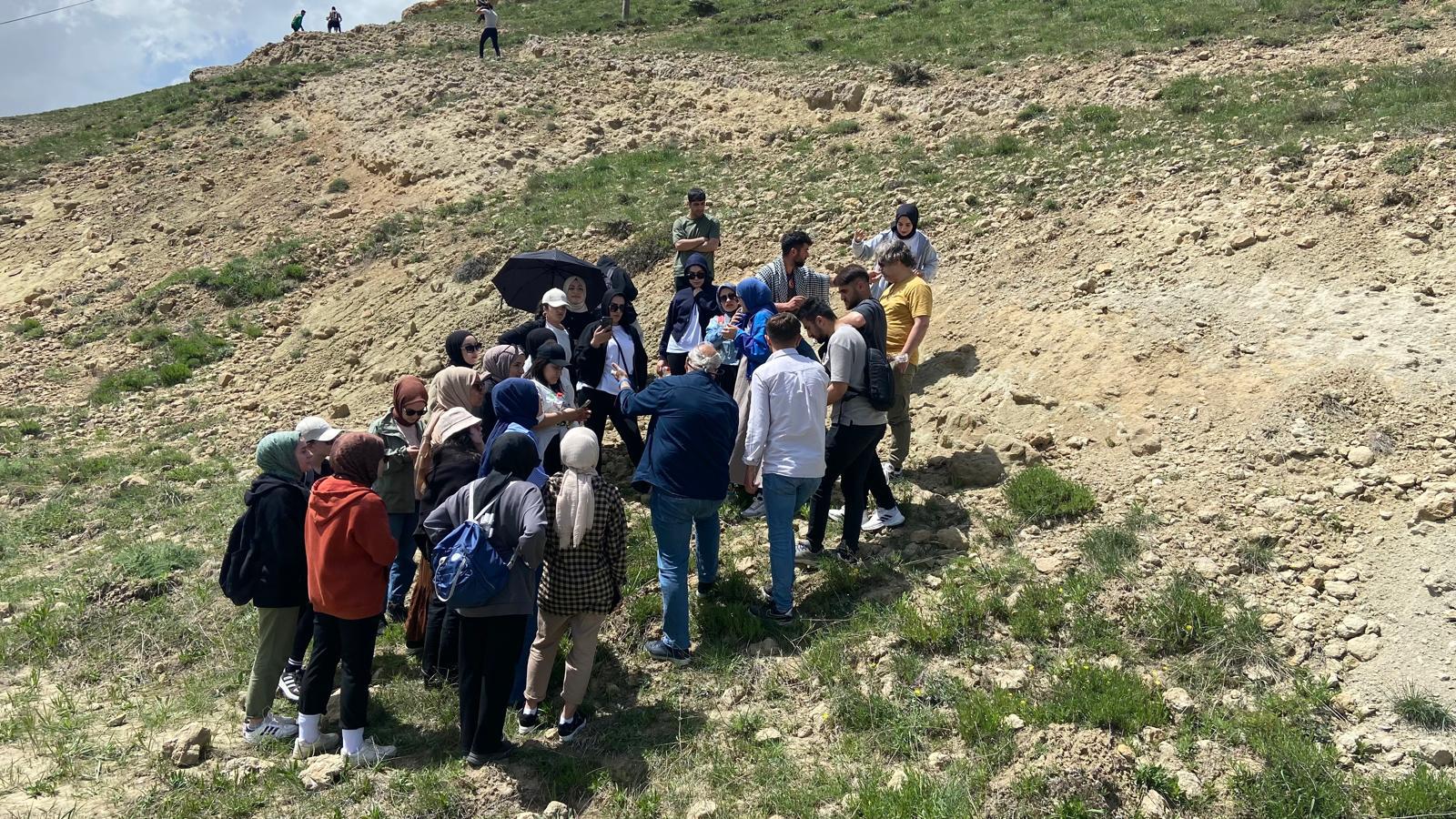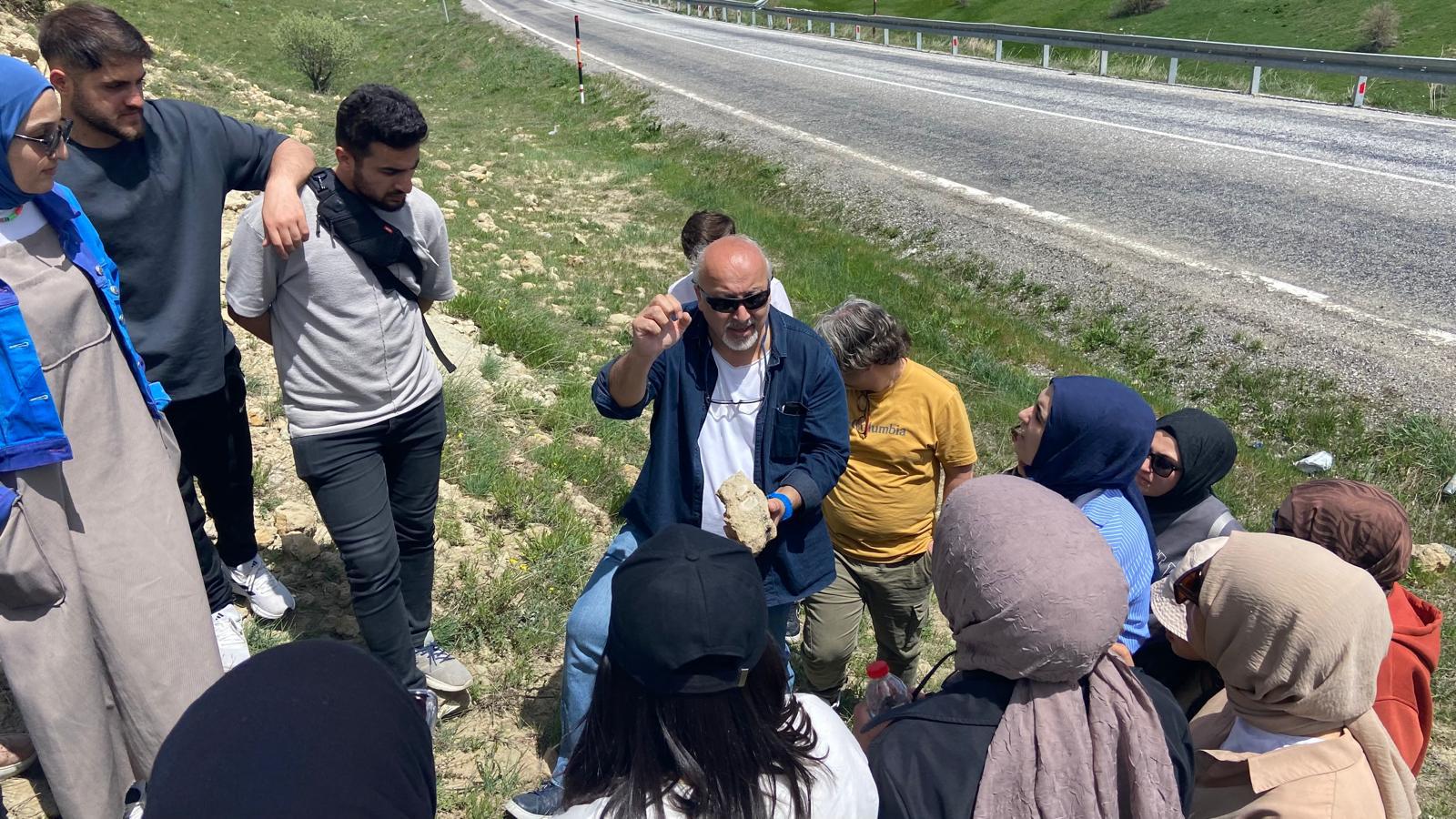 ‘Fosiller ve bize anlattıkları’ konu başlığıyla yapılan sınıf dışı eğitim etkinliğinde, fosillerin yerinde incelenmesi yapılarak, öğrencilerin fosilleri tanıması ve fosillerin bölge ve yöre hakkında bize anlattıkları konularında Dr. Öğretim Üyesi İskender Dölek tarafından uygulamalı eğitimler yapıldı.
