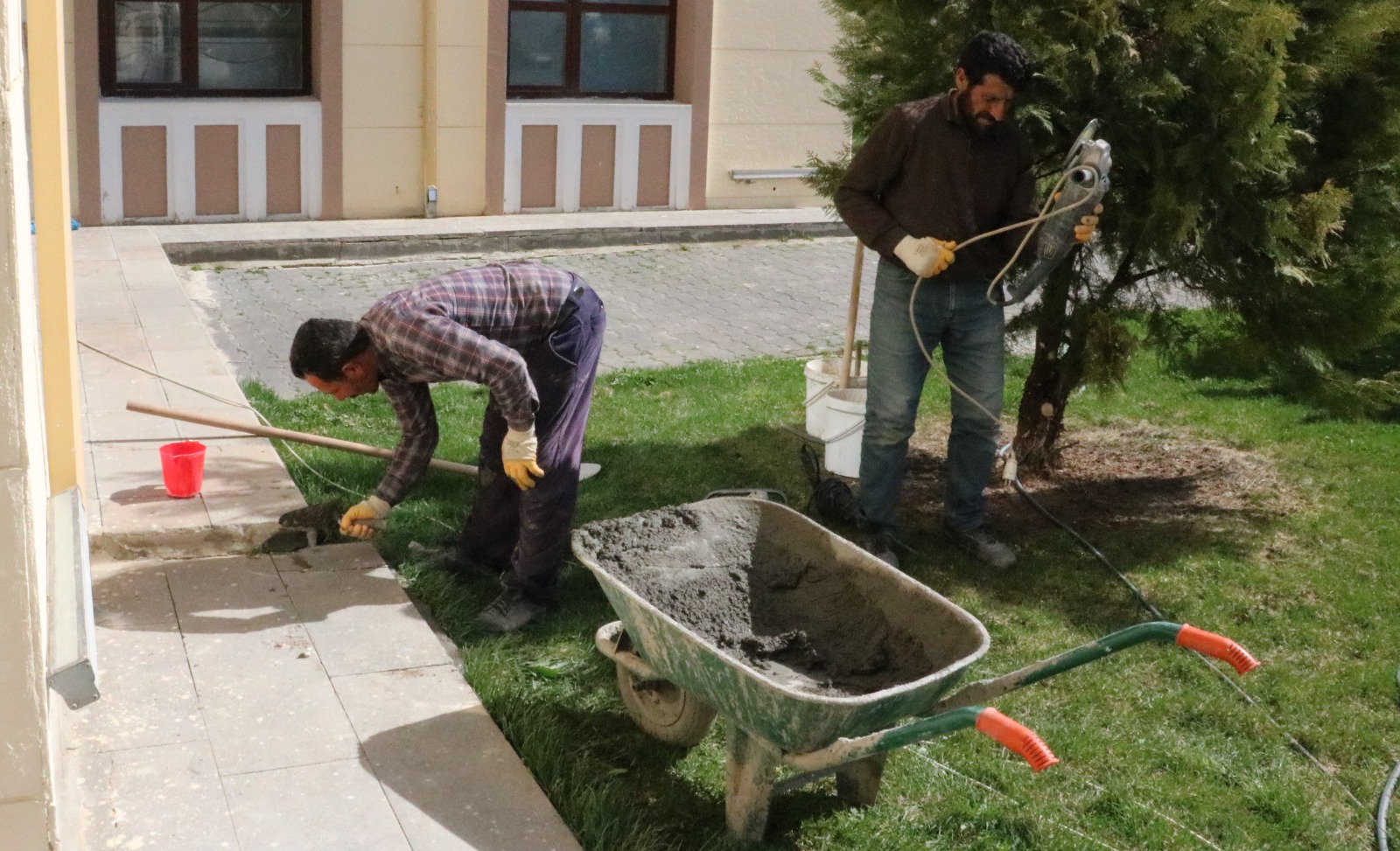 YİDB ekipleri bir taraftan da külliye içerisinde yer alan ağaçlar ve ormanlık alanların bakım ve temizlik ve peyzaj çalışmalarını organize etti. Bu kapsamda ağaçların daha güçlü ve verimli olması için budama ve gübreleme işlemleri gerçekleştirildi.