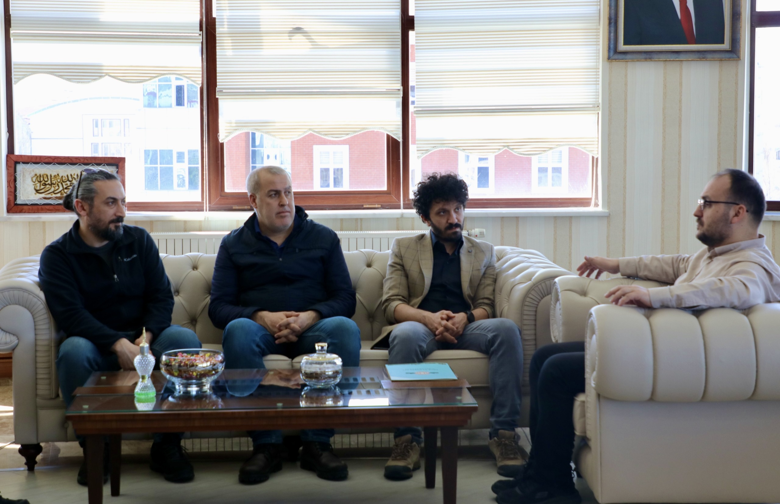 Rektörümüz Prof. Dr. Mustafa Alican, Üniversitemiz Prof. Dr. Sabahattin Zaim Konferans Salonunda gerçekleştirilen "Kuramsal Açıdan Savaş Alanı Arkeolojisine Yeni Bir Bakış: Malazgirt Projesi" programının ardından Proje Koordinatörü Dr. A. Oğuzhan Karaçetin ve proje ekibinin bir kısmını makamında ağırladı.