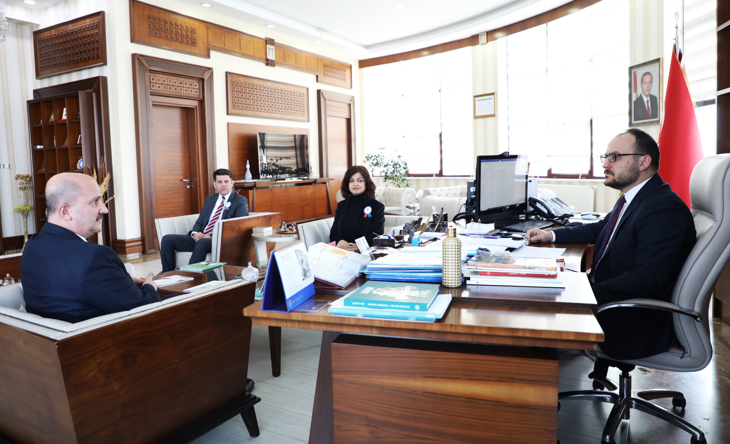 36. Vergi Haftası kapsamında, Muş Defterdarı Mehmet Akkaya, defterdarlık personeli ile birlikte Rektörümüz Prof. Dr. Mustafa Alican’ı makamında ziyaret etti.