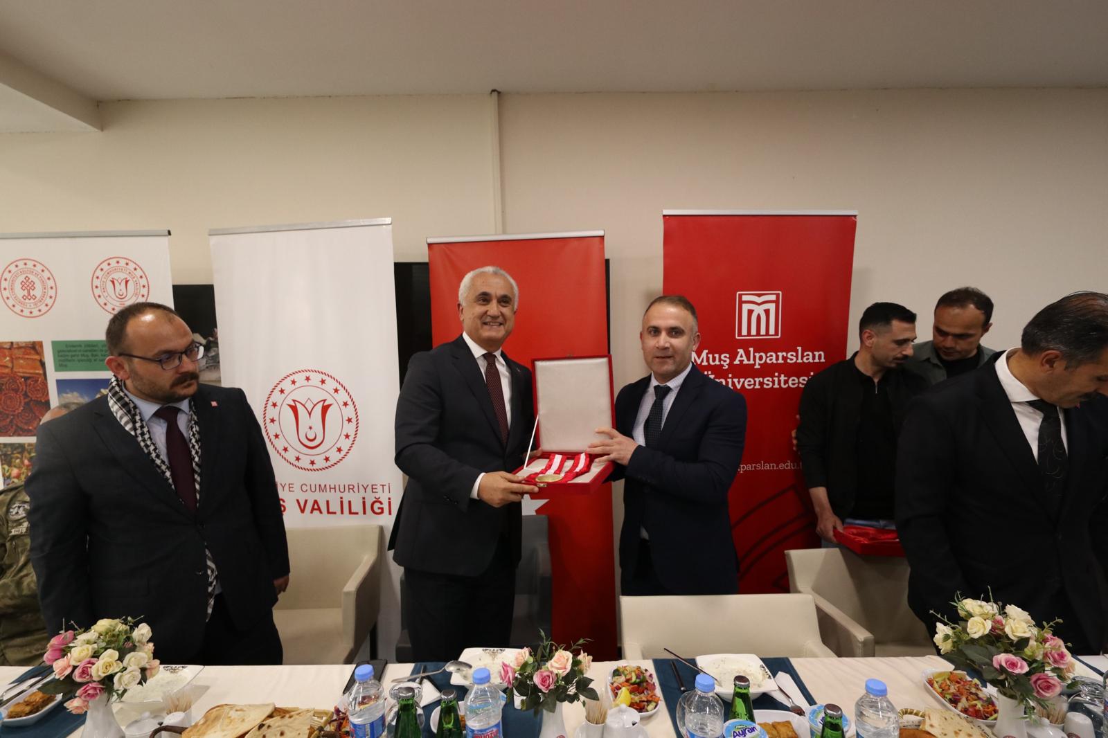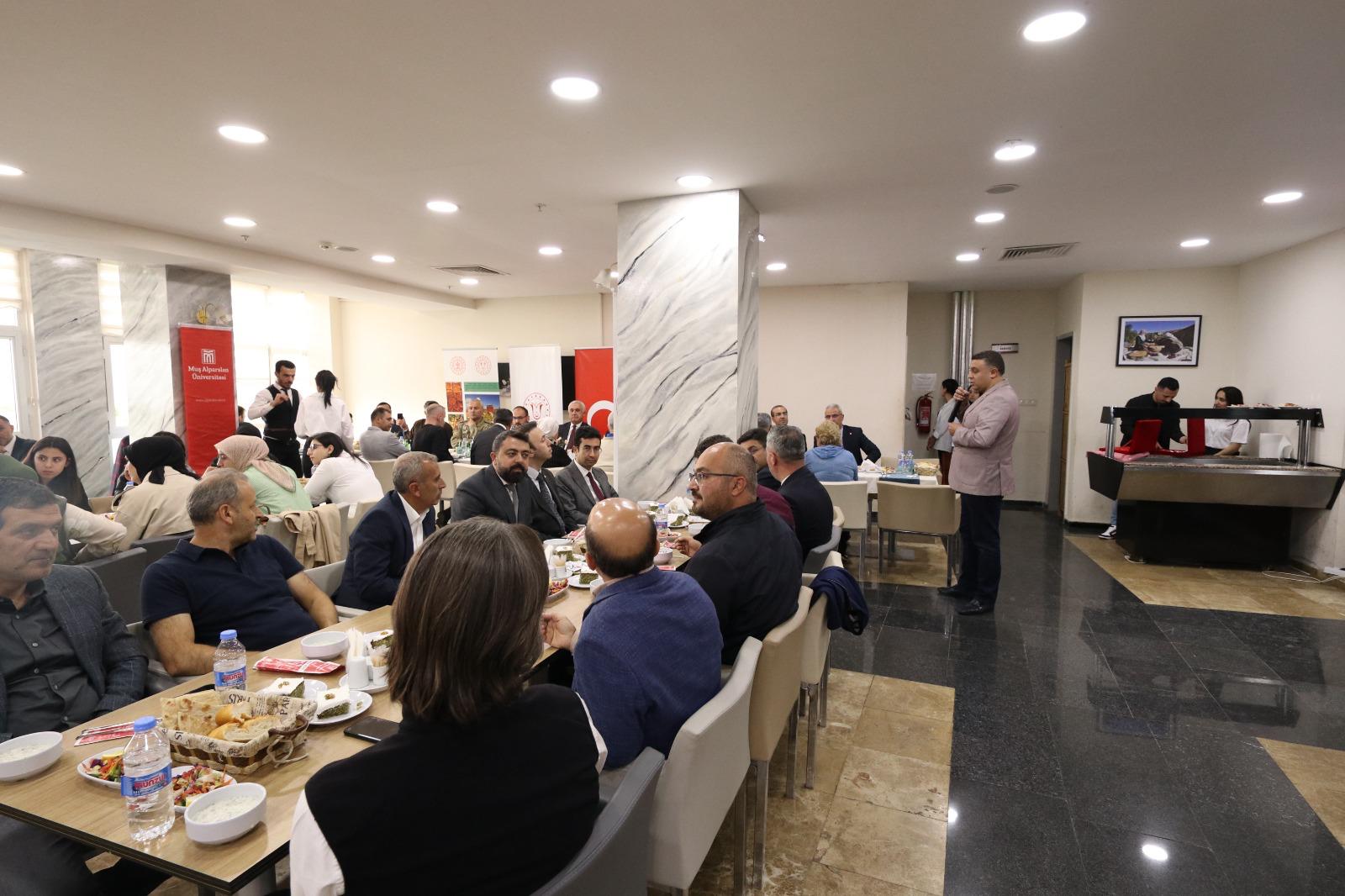 Rektörümüz Prof. Dr. Alican, konuklarına hoş geldiniz diyerek başladığı konuşmasında “Bugün sizlere yöresel yemekler ikram etmek istedik. Biz üniversite yemekhanemizde haftada bir gün bu yöresel yemekleri severek yiyoruz. Eminim ki sizler de beğeneceksiniz" ifadelerini kullandı. Rektörümüz, üniversite olarak Muş tarihi ve kültürünün görünür ve bilinir olması için pek çok çalışma yaptıklarını, Malazgirt Savaş Alanının Tespiti, Tarihi ve Arkeolojik Yüzey Araştırma Projesi’nin de bu konu da yaptıkları en önemli çalışma olduğunu söyledi.