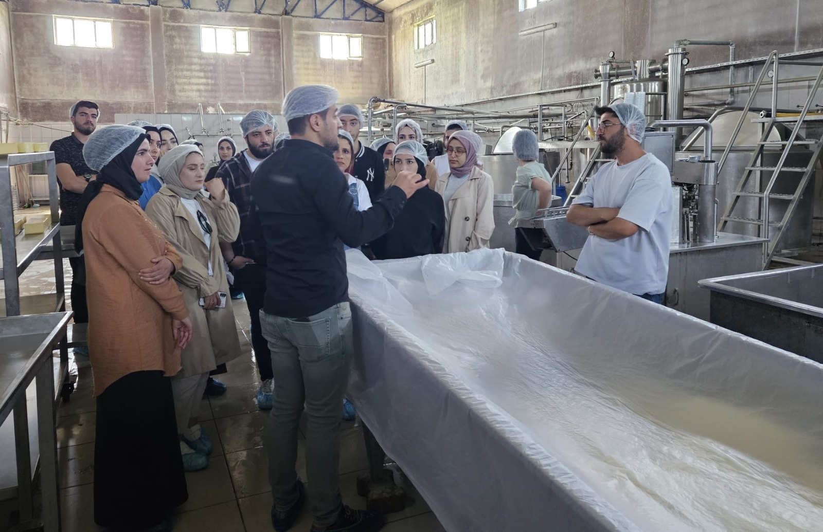 Gezi sırasında öğrenciler, süt fabrikasında çiğ sütün kabulünden son ürünün çıkışına kadar tüm üretim prosesini (kaşar peynir ve yoğurt üretim basamakları) yerinde uygulamalı olarak gözlemlediler. Ayrıca üretim esnasında sütte pH analizi, refraktometre ile kuru madde analizi ve milkana cihazında genel kimyasal bileşim analizlerini uygulamalı olarak gerçekleştirdiler. Öğrenciler, kaşar peyniri üretiminde en temel aşamalardan biri olan teleme fermentasyon aşamasını asitlik (pH) kontrolü yaparak yerinde gözlemledi.