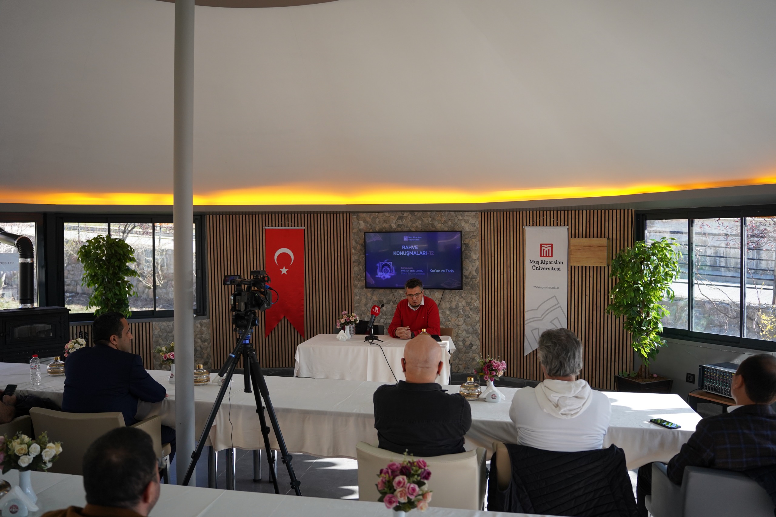 Üniversitemiz tarafından düzenlenen “Rahve Konuşmaları” serisinin on ikinci programı, Dokuz Eylül Üniversitesi öğretim üyesi, tarihçi ve yazar Prof. Dr. Zafer Duygu’nun katılımıyla gerçekleştirildi.