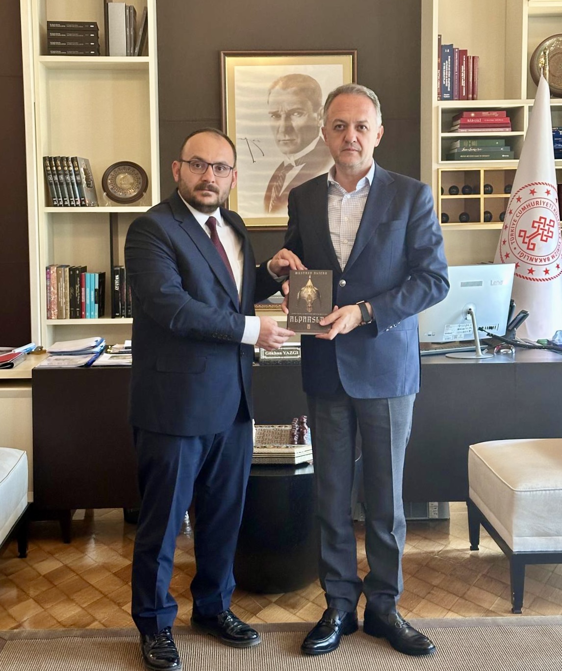 Görüşmenin ardından Rektörümüz Prof. Dr. Mustafa Alican, kaleme aldığı eserini Gökhan Yazgı beyefendiye hediye etti.