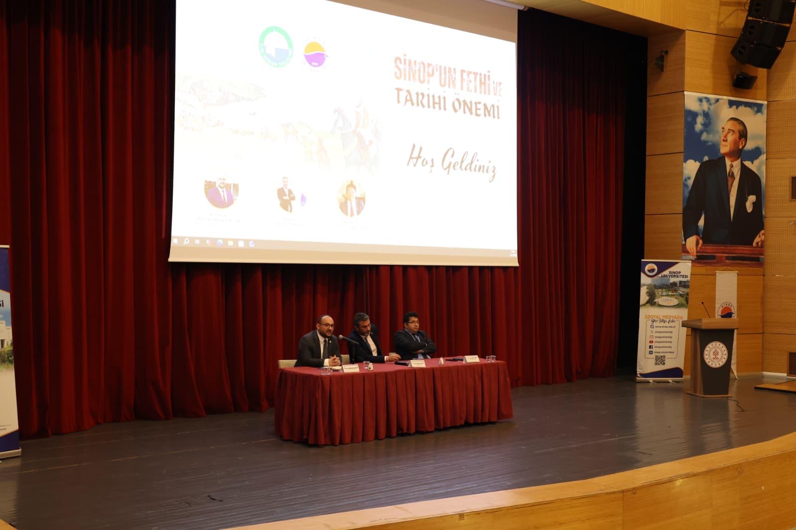 Açılış konuşmalarının ardından Fen-Edebiyat Fakültesi Dekanı Prof. Dr. Serkan Yazıcı moderatörlüğünde gerçekleşen panelde, Rektörümüz Prof. Dr. Mustafa Alican ile Anadolu Üniversitesi Öğretim Üyesi Prof. Dr. Haşim Şahin, Sinop’un fethinin Anadolu’nun Türkleşmesi ve Karadeniz’in güvenliği açısından taşıdığı önemi değerlendirdi.
