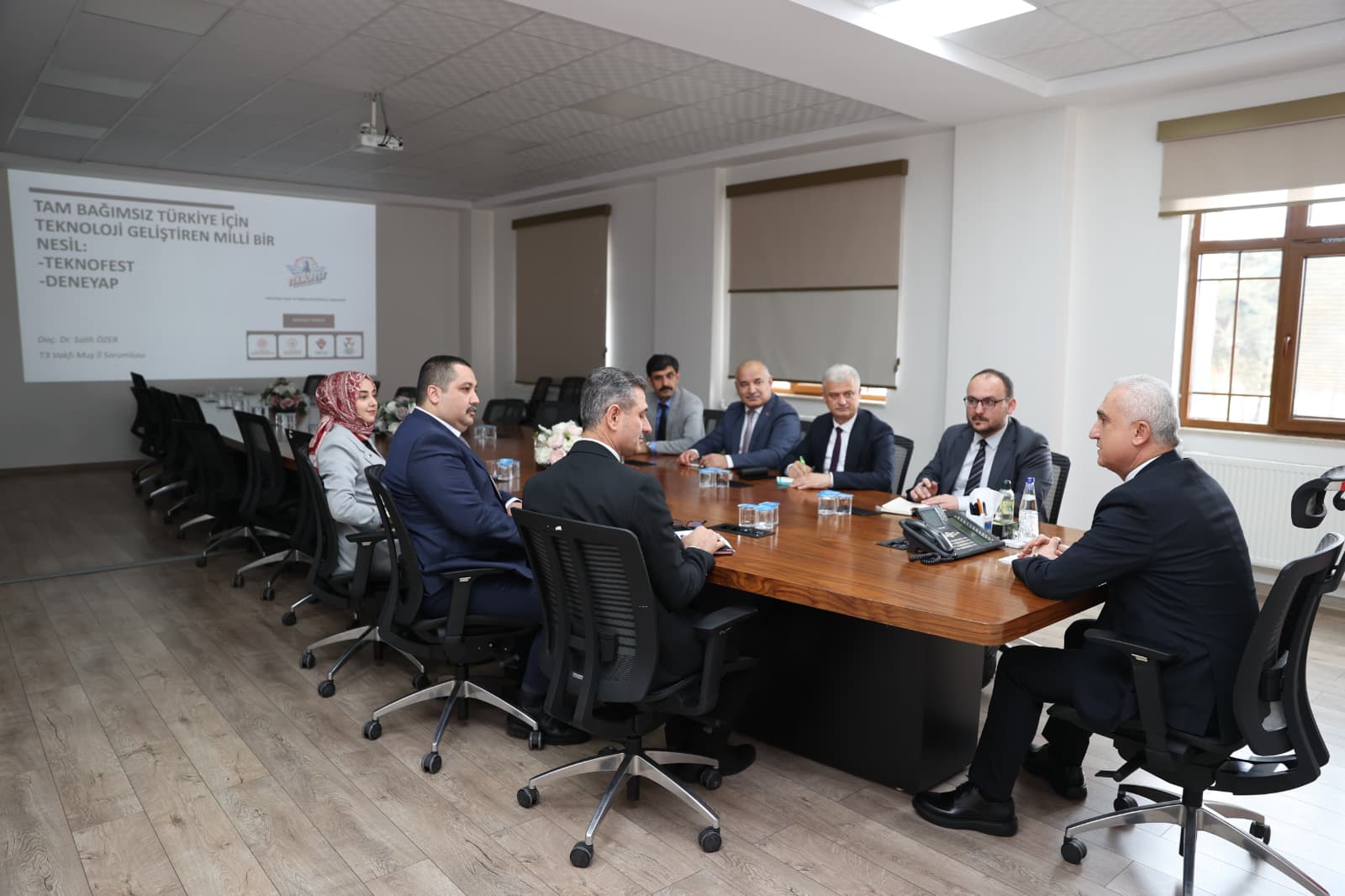 Muş’ta TEKNOFEST ve DENEYAP çalışmalarının mevcut durumu ile il genelinde proje üretim motivasyonunun artırılmasına yönelik önemli bir koordinasyon toplantısı gerçekleştirildi. Muş Valisi Avni Çakır koordinasyonunda düzenlenen toplantıya, Rektörümüz Prof. Dr. Mustafa Alican’ın yanı sıra Gençlik ve Spor İl Müdürü Yusuf Kılıç, Sanayi ve Teknoloji İl Müdürü ile İl Milli Eğitim Müdürlüğü yetkilileri katıldı.