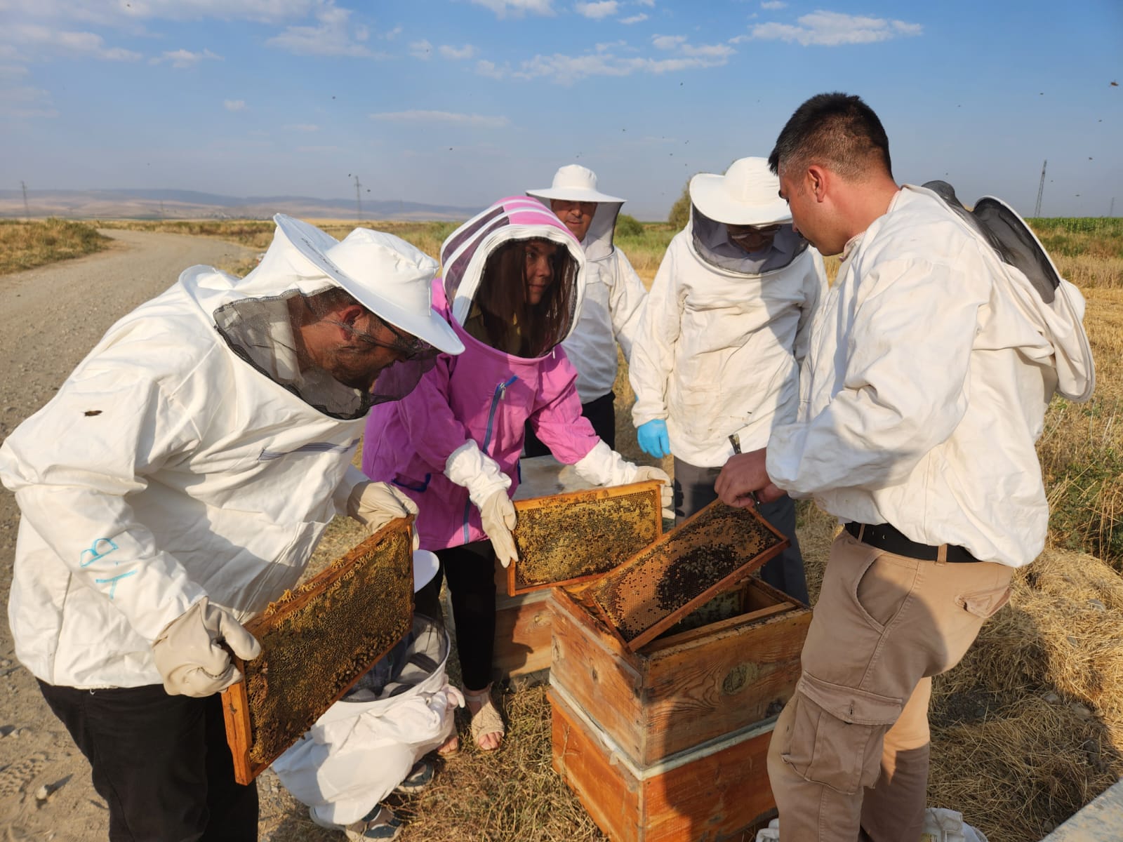 Yayla sezonunun sona ermesinden sonra Yıldız Tarım İşletmesi arazisine ayçiçeği bitkisinin nektar ve poleninden yararlanması için taşınan arı kolonilerinde rektörümüz Prof. Dr. Alican incelemelerde bulundu. Rektörümüz Prof. Dr. Alican ziyaret sırasında arı kovanlarının kontrolünü ve petekli balların hasadını gerçekleştirdi.