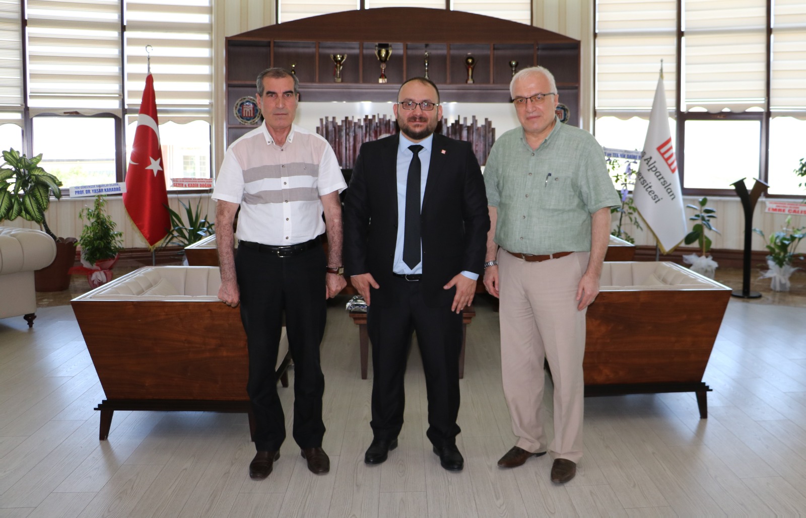 Rektörümüz Prof. Dr. Mustafa Alican göreve geldikten sonra başlayan hayırlı olsun ziyaretleri devam ediyor. Rektör Alican, önce PTT İl Başkanı Fahri Ocak ve beraberinde Rıfkı Çatak ile sonrasında İş-Kur İl Müdürü Mehmet Emin Taylan ve İş-Kur İl Müdür Yardımcısı Ahmet Sağlık ile bir araya geldi. Rektör Alican hayırlı olsun temennisinde bulunan konukları ile tek tek görüşerek ziyaretlerinden duyduğu memnuniyeti dile getirdi.