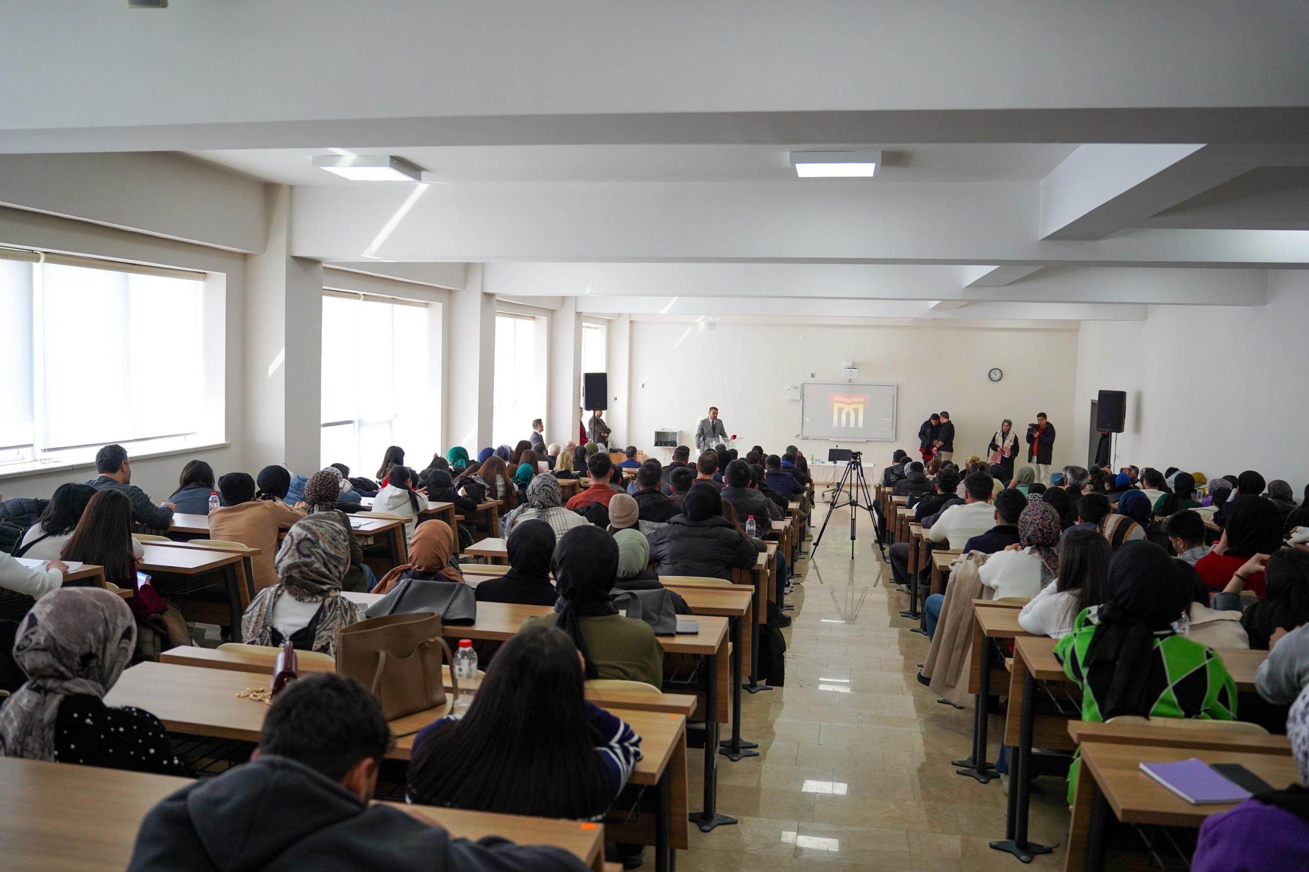 Üniversitemiz Sosyal Bilimler Meslek Yüksekokulu tarafından öğrencileri bilinçlendirmek amacıyla "Para Kazanayım/Harçlığımı Çıkarayım veya Arkadaşıma İyilik Yapayım Derken Dolandırıcı Konumuna Düşme" konulu bir seminer düzenlendi.