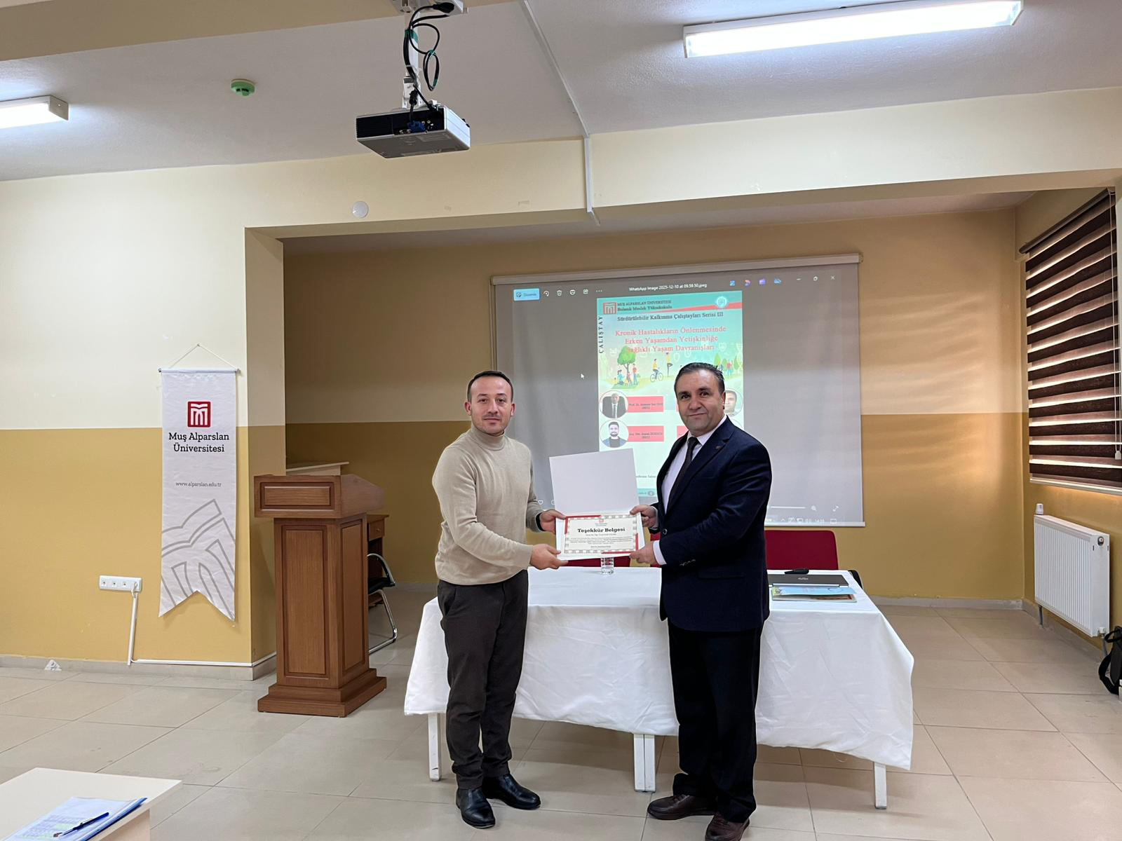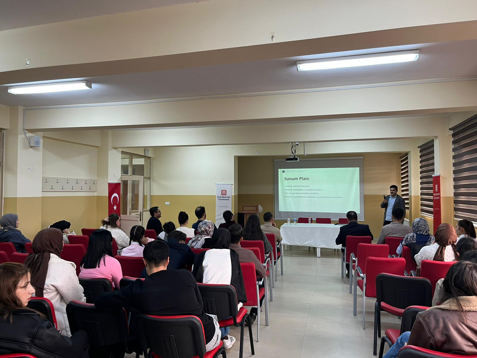 Bulanık Meslek Yüksekokulu Konferans Salonu’nda gerçekleştirilen programda, kronik hastalıkların önlenmesinde sağlıklı yaşam alışkanlıklarının önemi bilimsel bir çerçevede ele alındı. Sunumlarda, erken yaşlardan itibaren kazanılan doğru beslenme alışkanlıkları, düzenli fiziksel aktivite ve sağlıklı yaşam davranışlarının bireysel ve toplumsal sağlık üzerindeki etkileri vurgulandı.