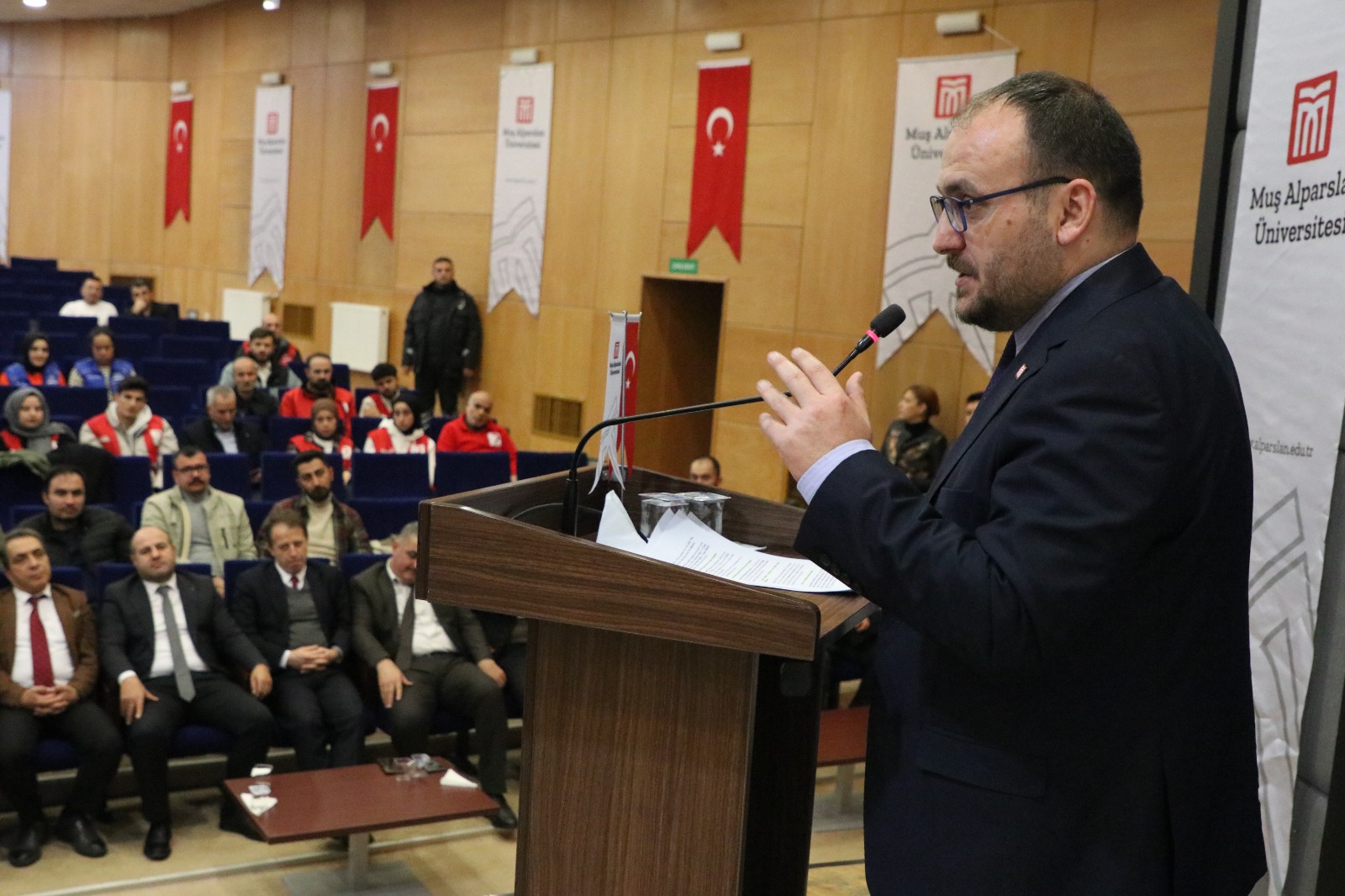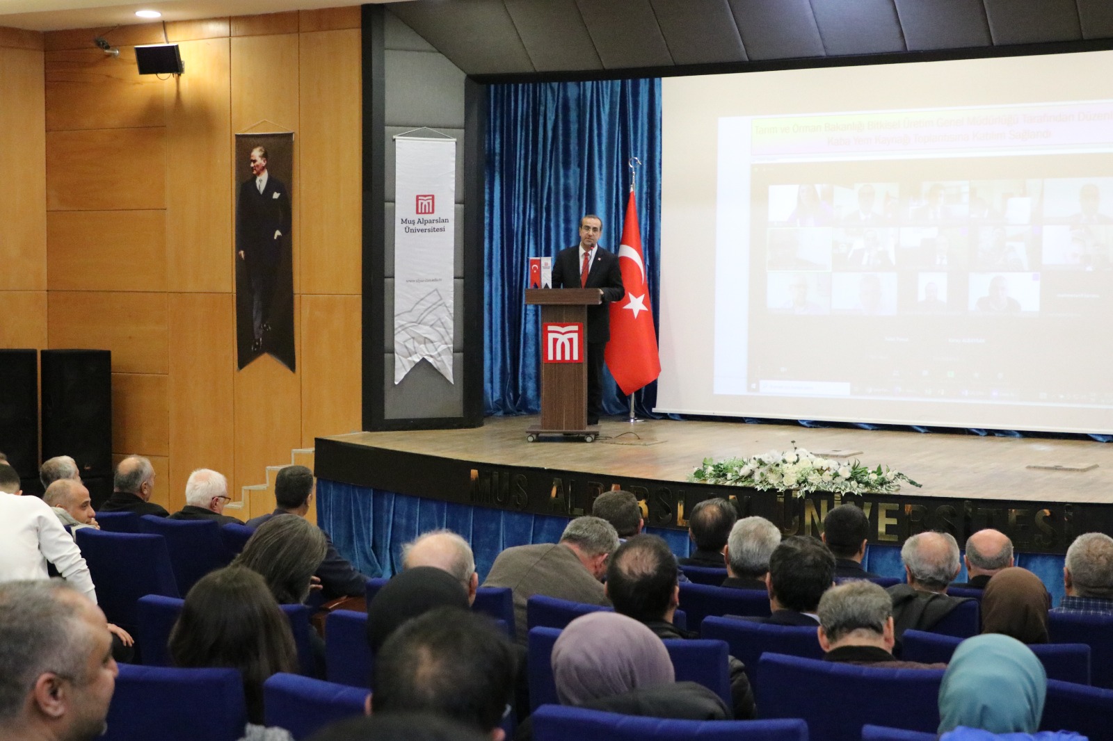 Prof. Dr. Yaşar Karadağ'ın organizasyonuyla gerçekleşen programa Rektörümüz Prof. Dr. Mustafa Alican, Rektör Yardımcısı Prof. Dr. Kenan Yıldırım, Rektör Danışmanları Doç. Dr. Mehmet Özalper ve Dr. Öğr. Üyesi Mustafa Yaşar, Genel Sekreter Harun Demir, Muş Belediye Başkan Yardımcısı Hamdullah Karasu, İl Özel İdaresi Genel Sekreteri Şeyhmus Yentür, İl Tarım ve Orman Müdürü Mehmet Gün, Muş Milli Eğitim Müdürü Enver Kıvanç, Muş İl Kültür ve Turizm Müdürü Mehmet Şengül, Aile ve Sosyal Hizmetler Müdürü Ahmet Kırtay, PTT Başmüdürü Fahri Ocak, Yıldız Alparslan Tarım İşletmesi Müdürü Hanifi Yağmur, Muş Kızılay İl Merkezi Başkanı Faik Aktaş, Muş Damızlık Sığır Yetiştiricileri Birliği Başkanı Cemal Arat, Muş İlçe Tarım ve Orman Müdürleri, Kamu Kurum ve Kuruluşlarının temsilcileri, akademisyenler, üreticiler ve öğrenciler de katıldı.