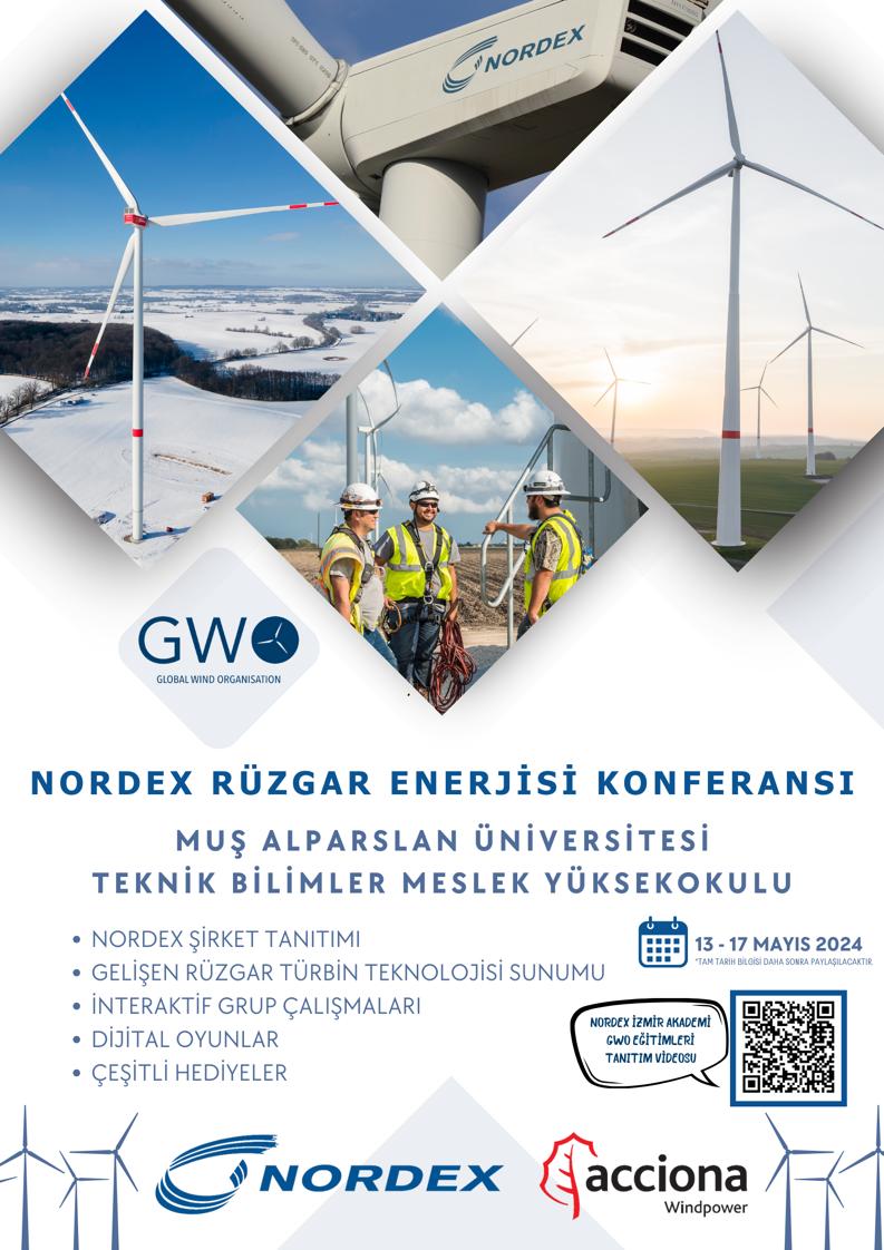 Eğitim sonunda, NORDEX Rüzgâr Enerjisi Konferansının 13-17 Mayıs 2024 tarihlerinde Muş Alparslan Üniversitesi Teknik Bilimler Meslek Yüksekokulu bünyesinde düzenlenmesine karar verildi.