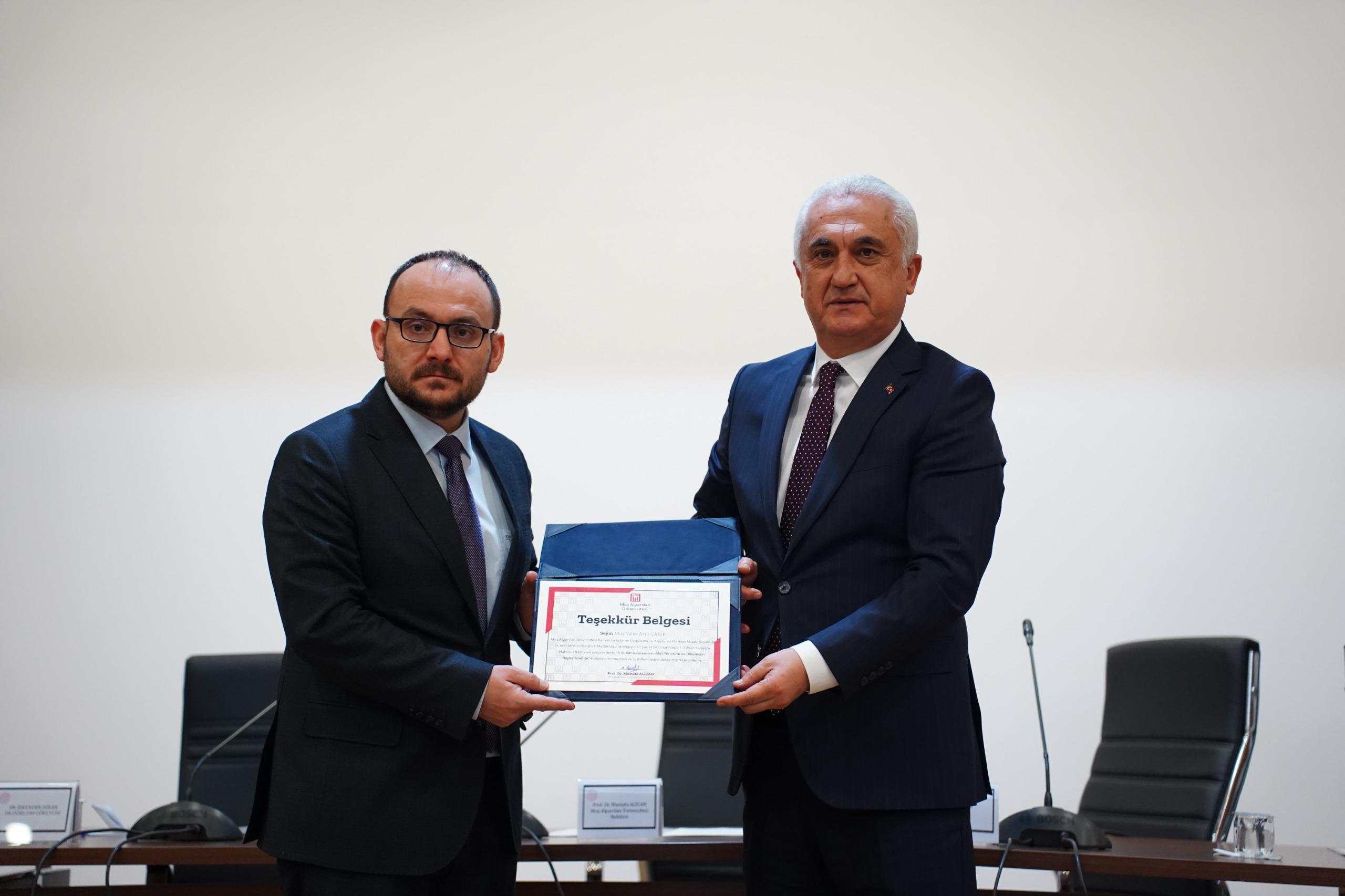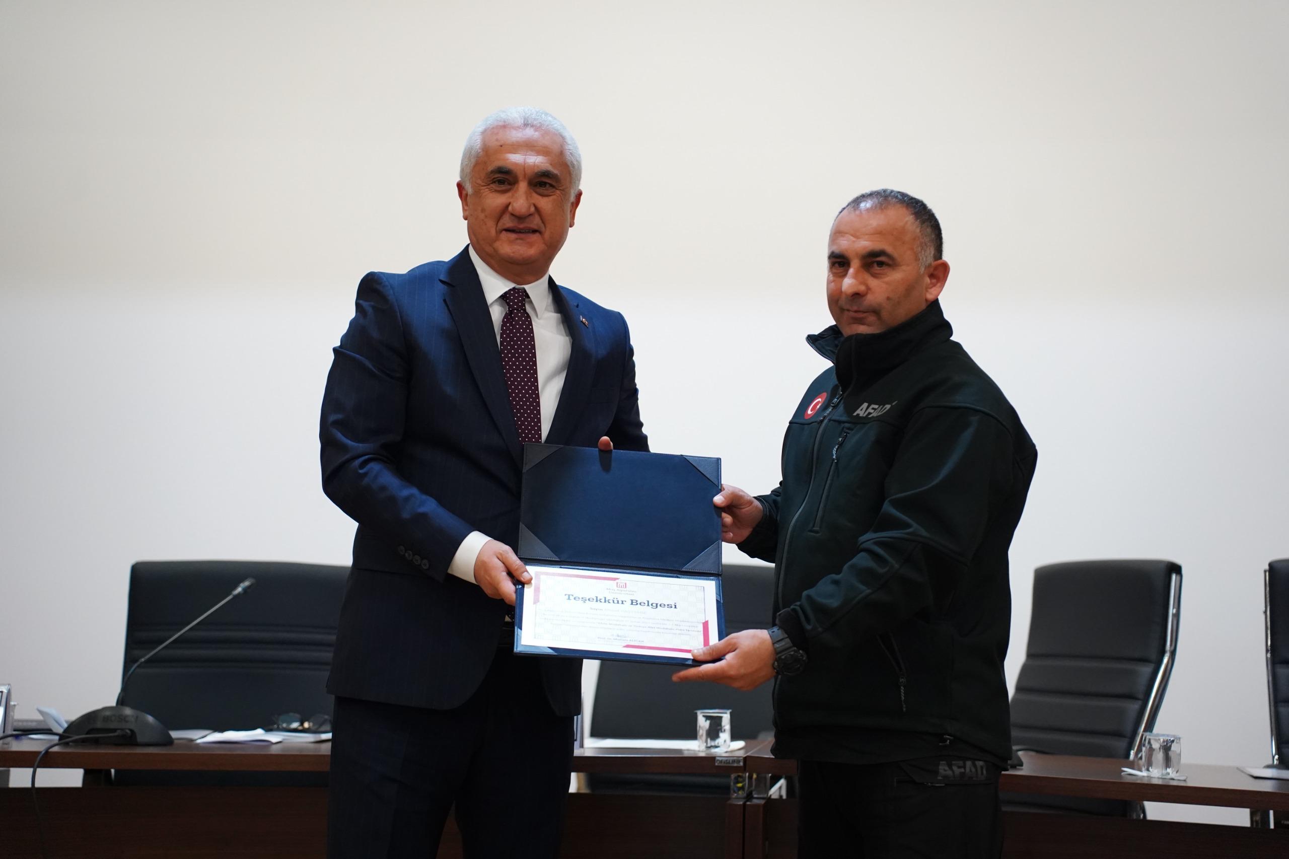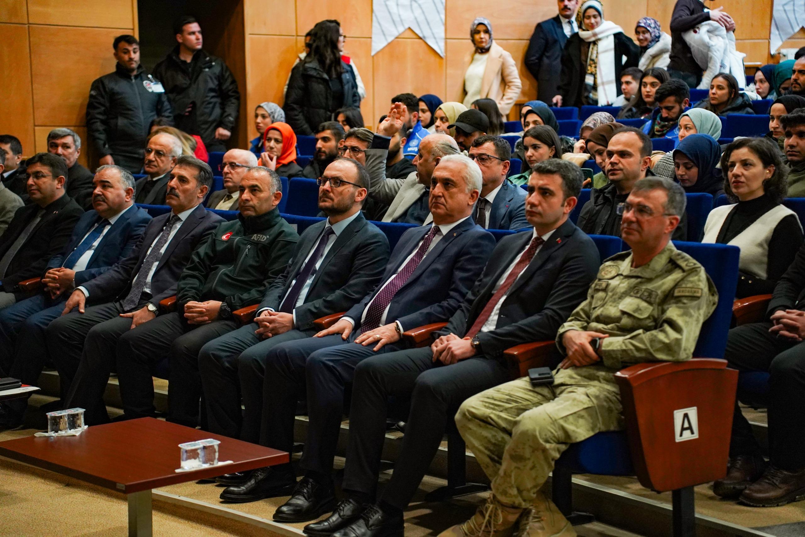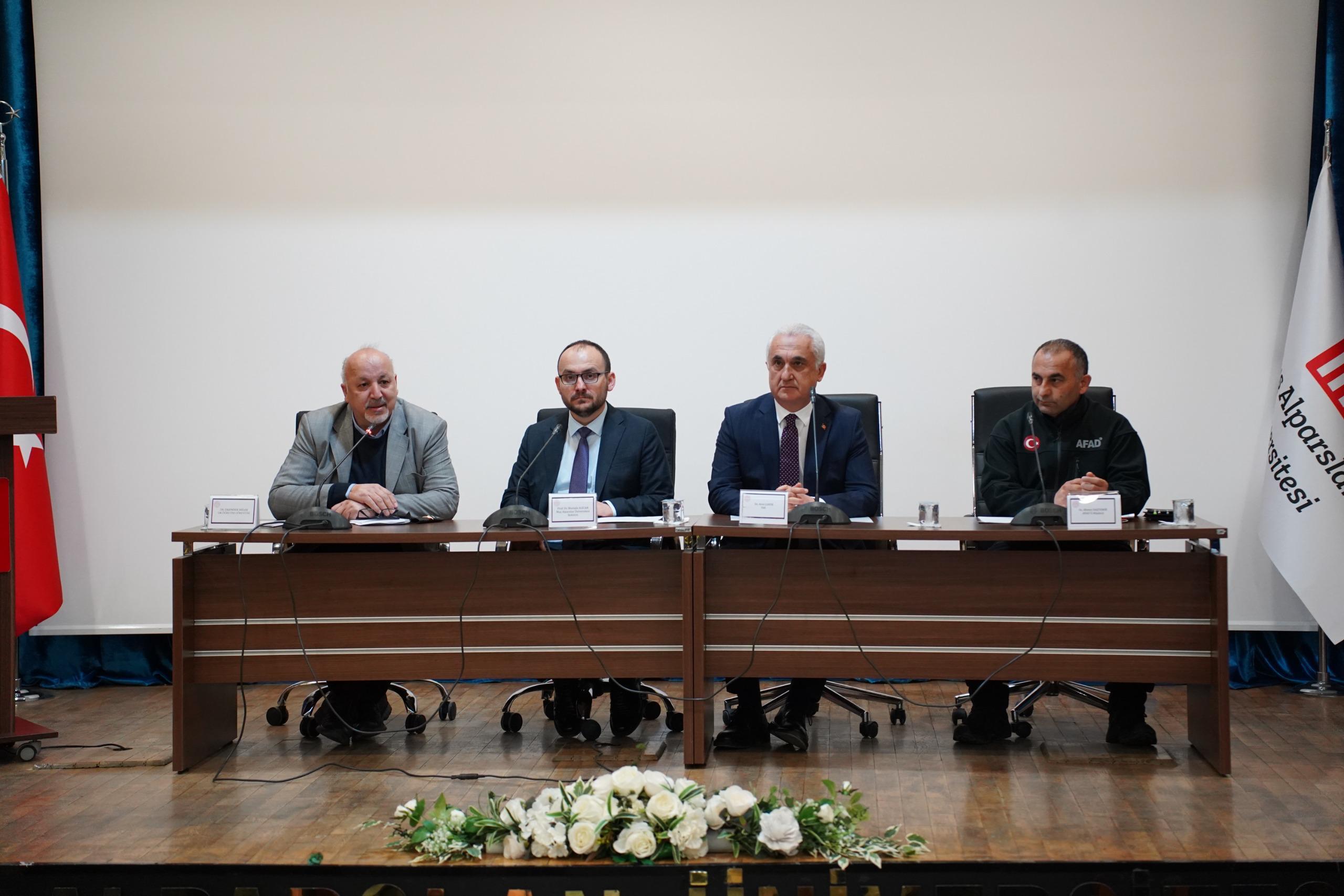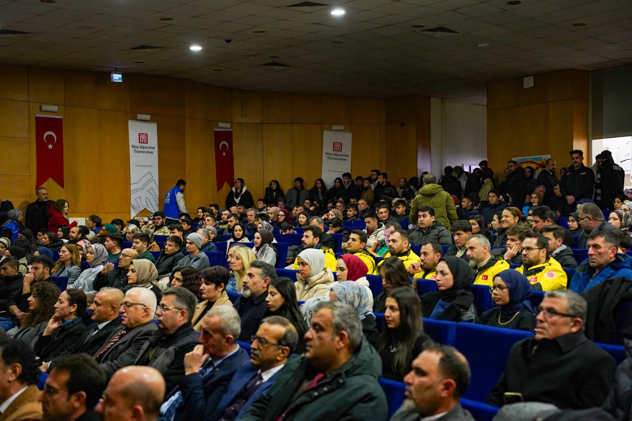 Prof. Dr. Sabahattin Zaim Konferans Salonu’nda düzenlenen etkinliğe Muş Valisi Avni Çakır, Rektörümüz Prof. Dr. Mustafa Alican, AFAD İl Müdürü Ahmet Daşdemir ve Dr. Öğr. Üyesi İskender Dölek konuşmacı olarak katıldı.