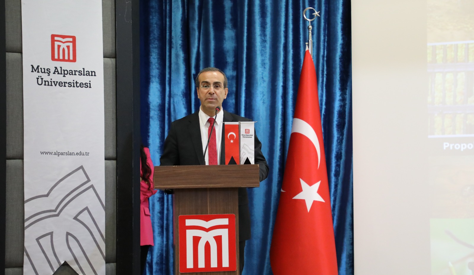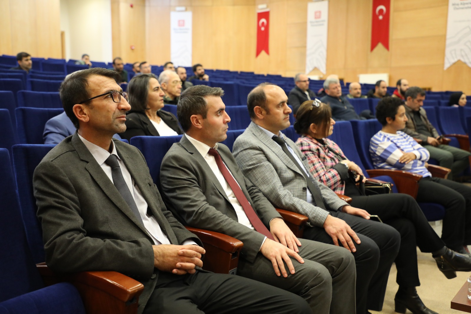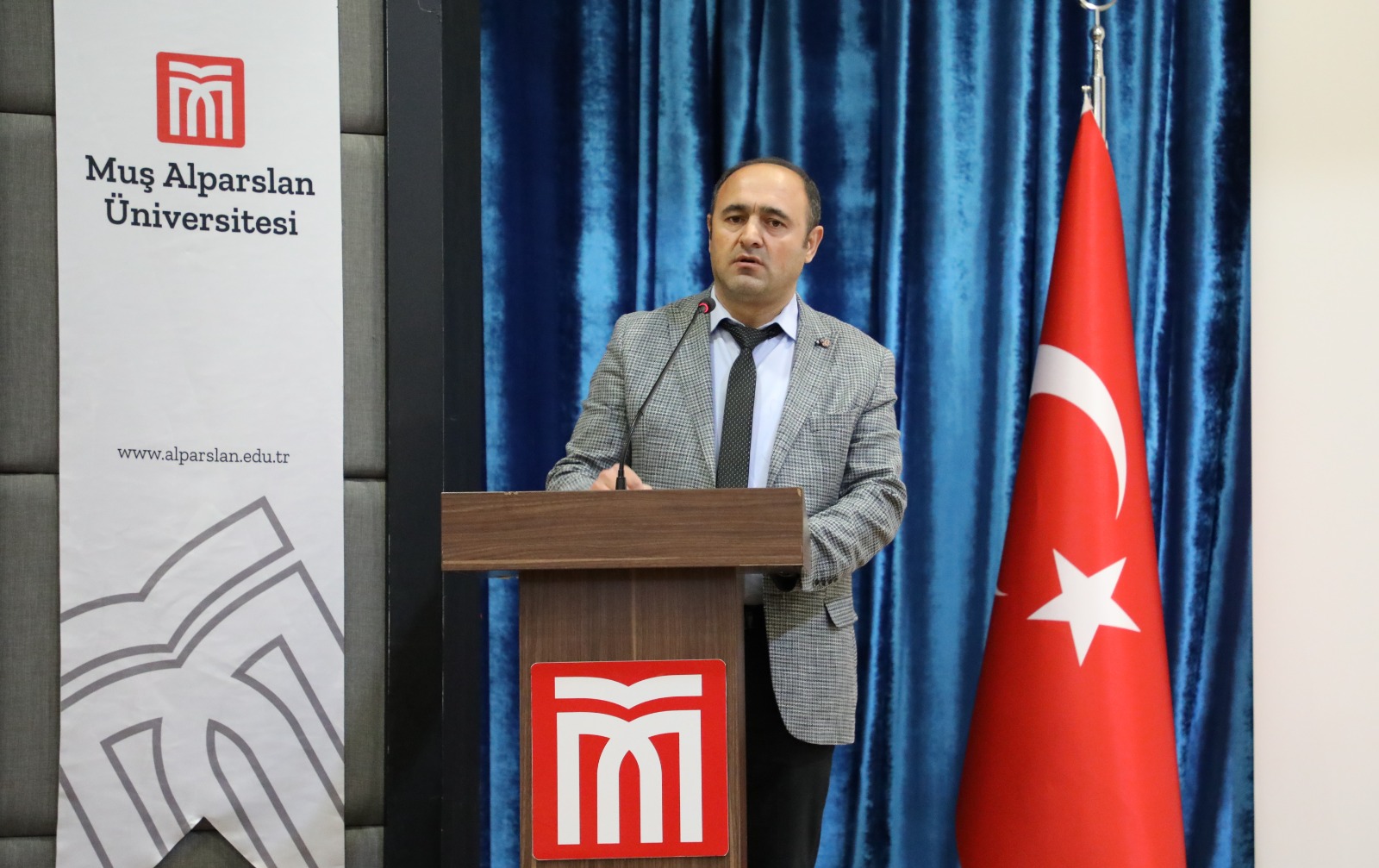 Seminerin açılış konuşmasını Prof. Dr. Karadağ ve Muş İl Tarım ve Orman Müdür Yardımcısı Eşref Süne yaptı. Karadağ yapmış olduğu konuşmasında ’’Muş ilinde arıcılık işletme sayısının 366 adet, kovan varlığının 59.219 adet ve bal üretim miktarı 446 tondur. Üniversitemiz Uygulamalı Bilimeler Fakültesi tarafından Rektörlüğümüzce desteklen güdümlü proje ile 94 adet endemik bitki türüne sahip olduğu tespit edilmiştir. Bu bitki çeşitliliğinin arıcılık açısından oldukça önem arz etmektedir. Muş Alparslan Üniversitesi bünyesinde 27 Mayıs 2021 tarihinde Arıcılık Uygulama ve Araştırma Merkezinin resmi olarak kurulmuş, 1 Müdür ve 2 Müdür Yardımcısı ile görevine devam etmektedir. Üniversitemizde ilk defa bal arısı yetiştiriciliği çalışmaları amacıyla arılık kurulmuştur. Bu kapsamda, her bir koloni içerisinde 10 adet arılı çerçeve bulunan toplam 20 adet koloni ile arıcılık faaliyetine başlanmış ve şu an itibariyle 30 kovana ulaşılmıştır. Aynı zamanda, İlk defa Kafkas ve Buckfast (Belfast) arı ırkı çalışmaları gerçekleştirilmiştir. Ayrıca bahar ayında 30 adet kocan daha ilave edilerek toplamda 60 kovana çıkılması gerçekleştirilecektir. Arı ve arı ürünlerinde Marka Tescili amacıyla Türk Patent Kurumuna müracaat edilmiştir. Yakın bir zamanda da Üniversitemiz bünyesinde Ana Arı Üretimi için laboratuvar oluşturma çalışmalarına da başlanacaktır. Üniversitemiz bünyesinde ilk defa arı zehri üretimi de gerçekleştirilmiştir’’ ifadelerini kullandı. Prof. Karadağ, arıcılık konusunda vermiş oldukları desteklerinden dolayı Rektörümüz Prof. Dr. Mustafa Alican’a teşekkür etti.