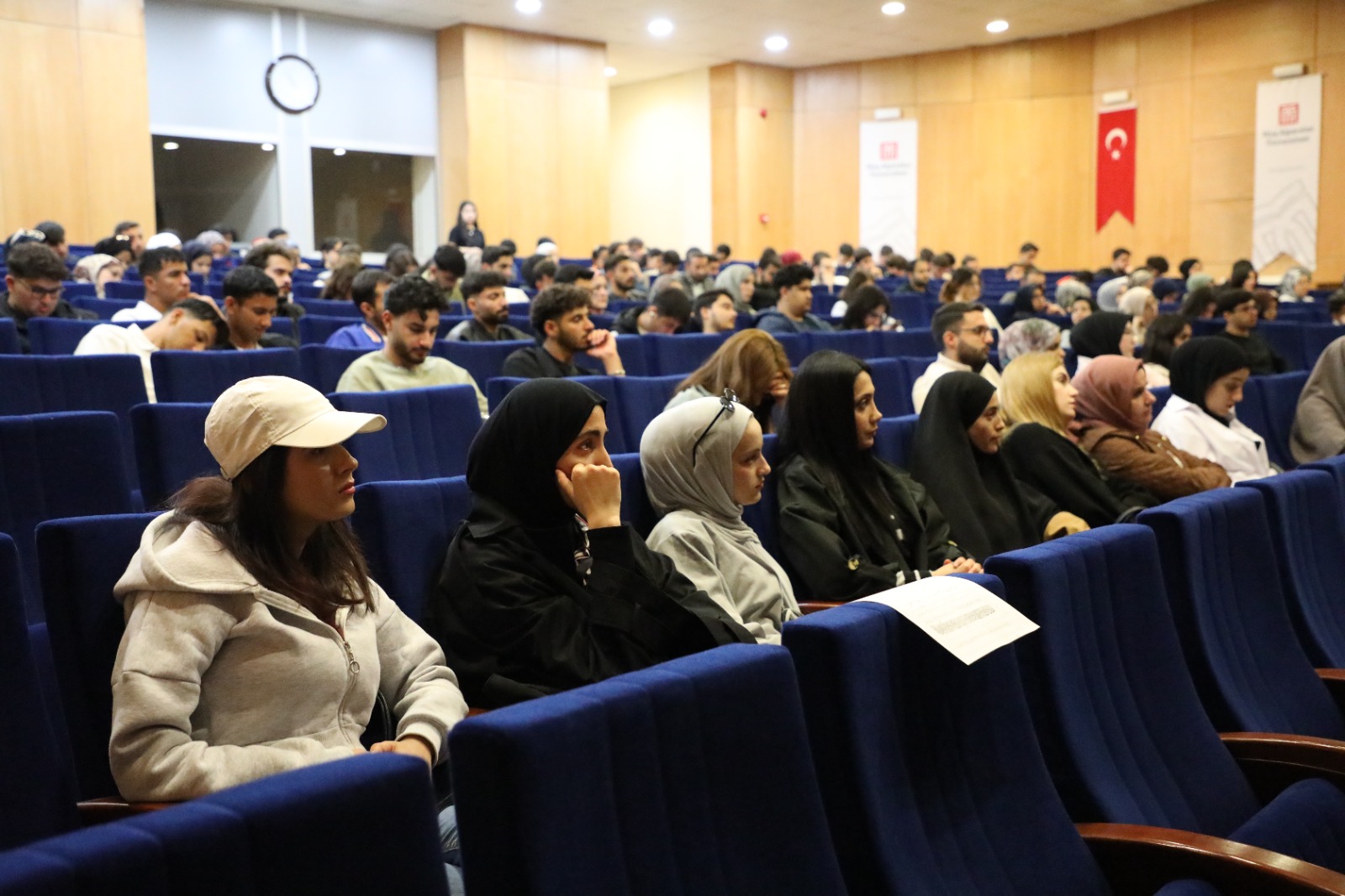 Rektörümüz Prof. Dr. Mustafa Alican, Rektör Danışmanlarımız Doç. Dr. Mehmet Özalper ve Dr. Öğr. Üyesi Oğuzhan Karaçetin, Genel Sekreter Yardımcımız Serhan Demir'in yanı sıra çok sayıda akademik ve idari personel ile öğrencilerin katılım sağladığı programda, Mustafa Sulu cilt sanatı ve yazma eserlerin korunması konularında kapsamlı bir sunum gerçekleştirdi.